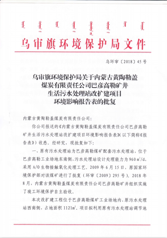 建设地点 | 巴彦高勒煤矿工业场地内 | 巴彦高勒煤矿工业场地内 | 符合环评要求 |