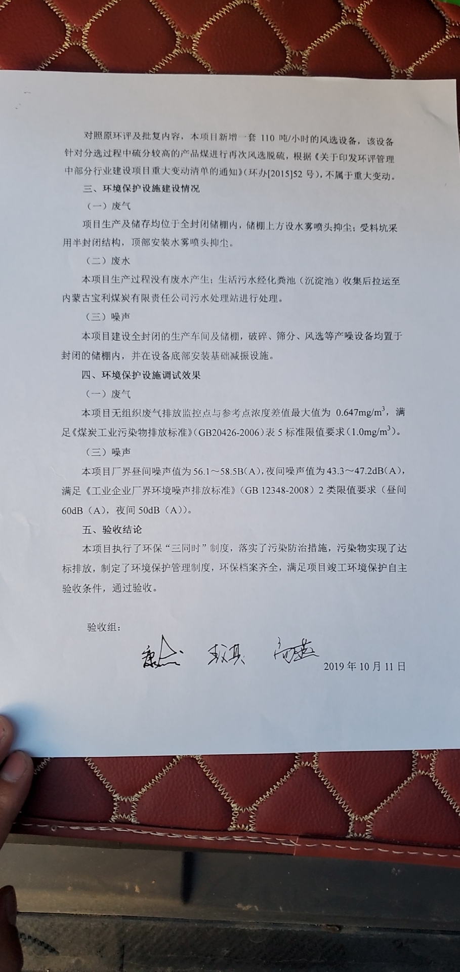 内蒙古宝隆能源有限公司120万吨 年选煤厂项目竣工环境保护验收报告(综合版)