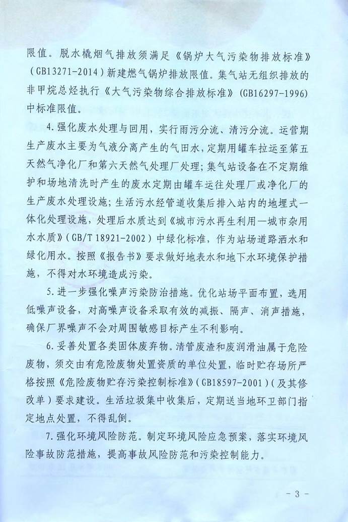 (3)《鄂尔多斯市环境保护局关于长庆油田分公司第一采气厂苏里格气田东三区 7×108m3/a 产能建设工程环境影响报告书的批复》(鄂环评【2015】292 号)。