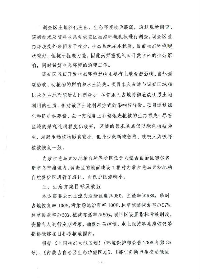 附件 4:《长庆油田分公司第一采气厂苏里格气田东三区(内蒙古)生态环境治理方案专家审查意见》2019 年 8 月 12 日;
