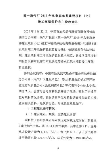 (1) 《第一采气厂 2019 年乌审旗单井建设项目(四)环境影响报告表》;
