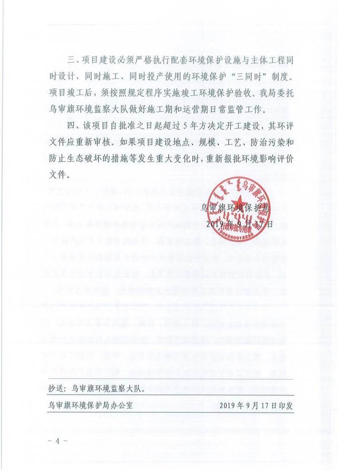环评文件审批机关 | 原乌审旗环境保护局 | 审批文号 | 乌环审〔2019〕110号 | 环评文件类型 | 建设项目环境影响报告表 |