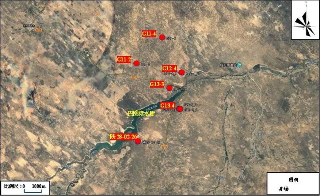 (5) 建设规模:建设 6 座天然气井场,共 12 口天然气单井。其中直井 4 口,直井单井设计产能为 1.1×104m3/d;水平井 8 口,设计水平井单井平均采出量 5.0×104m3/d,总采气量为 4.44×105m3/d;