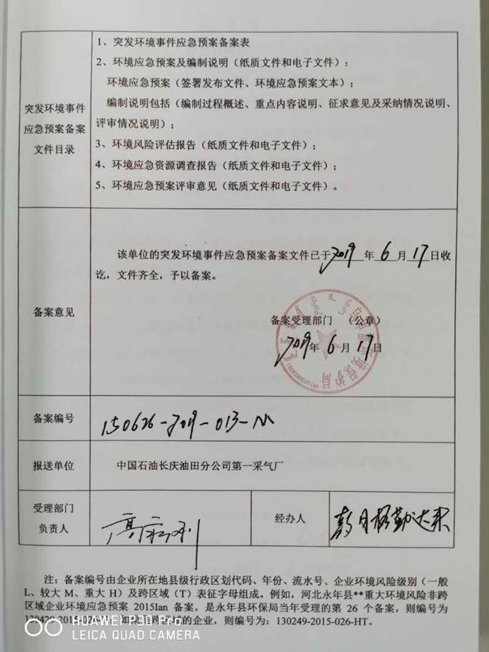 填表单位(盖章): 中国石油天然气股份有限公司长庆油田分公司第一采气厂 填表人(签字):赵云龙 项目经办人(签字):赵云龙