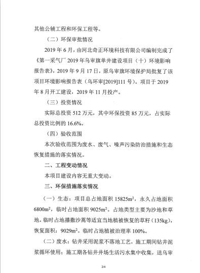 (1)项目名称:第一采气厂 2019 年乌审旗单井建设项目(十);