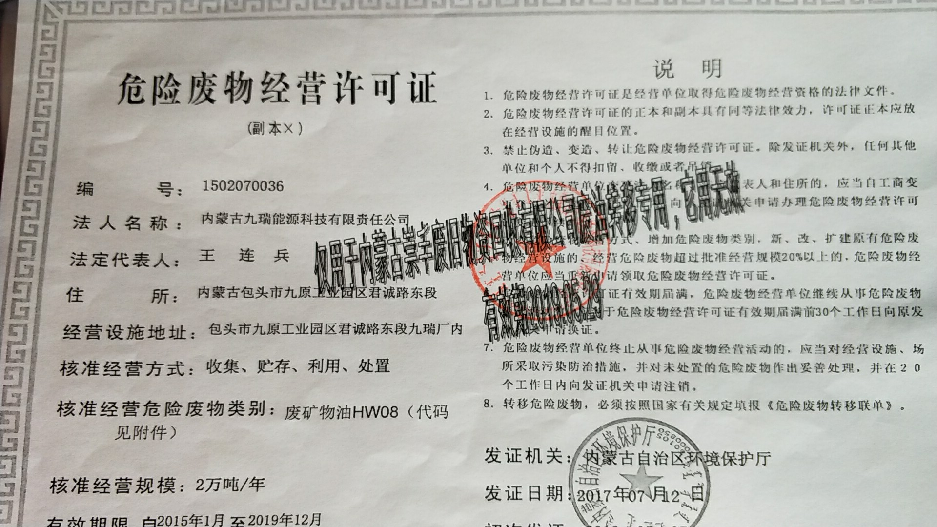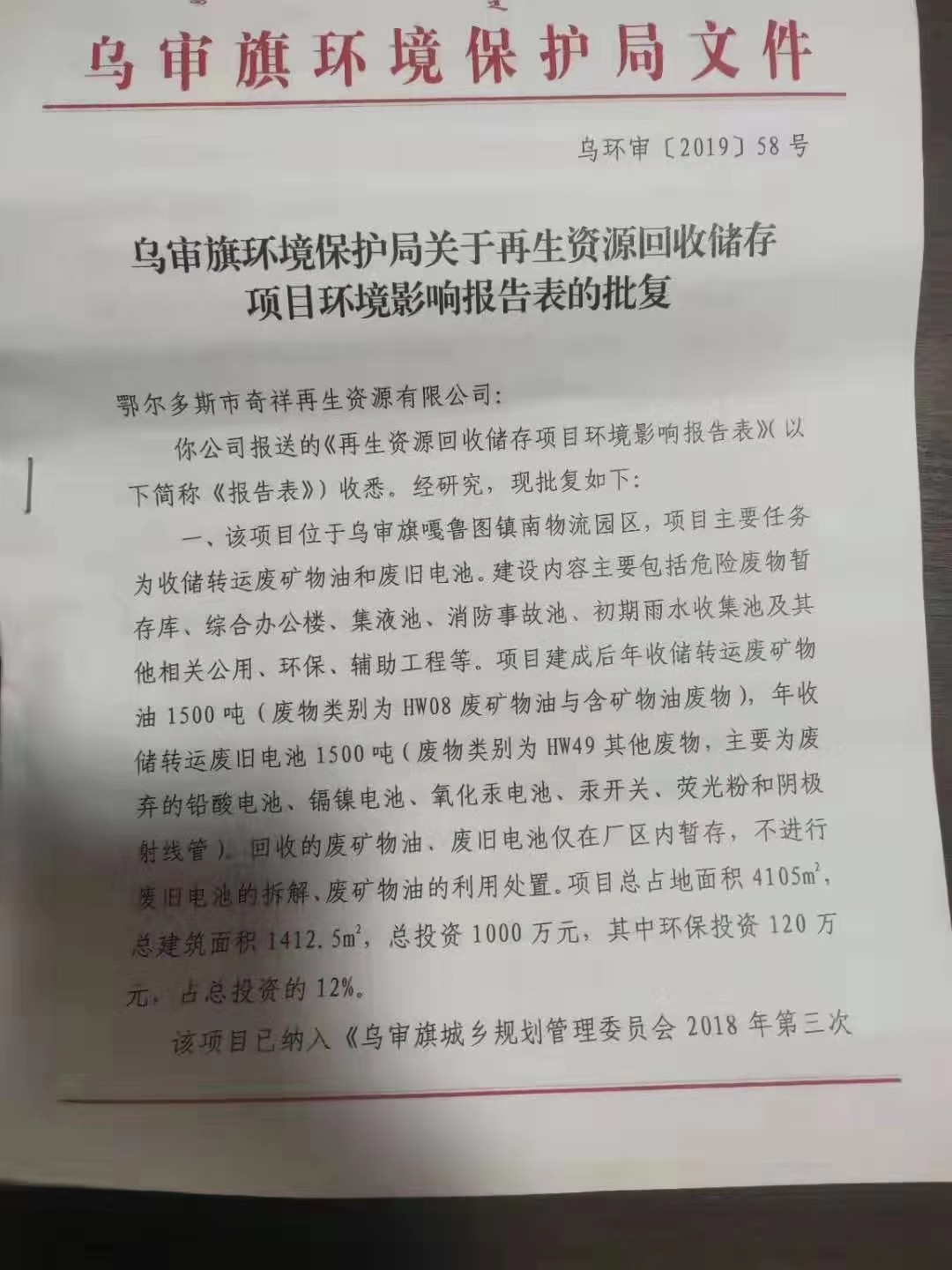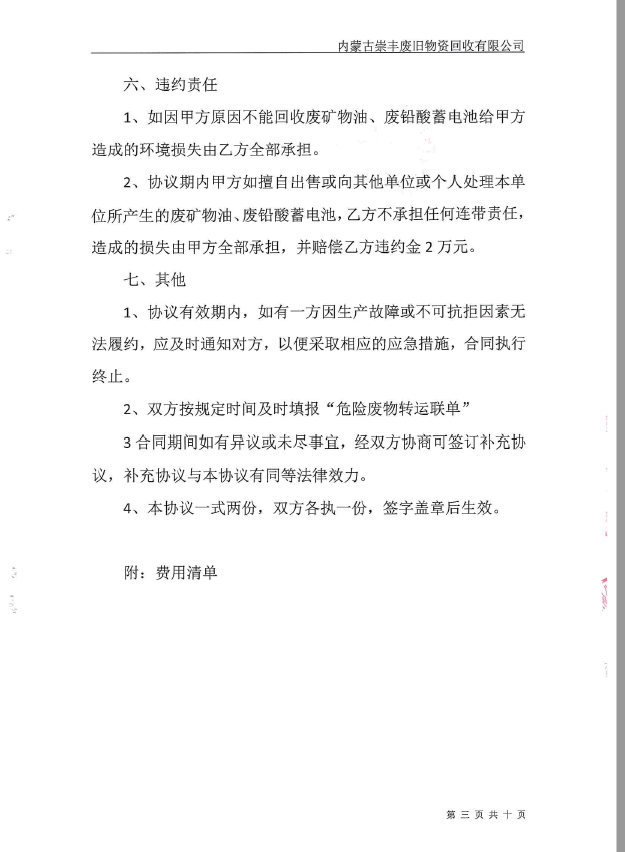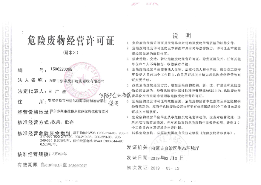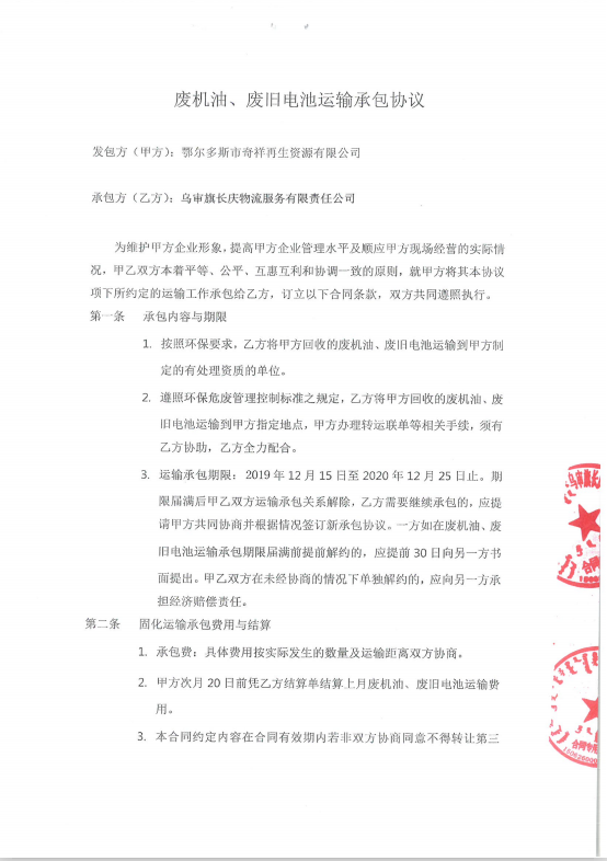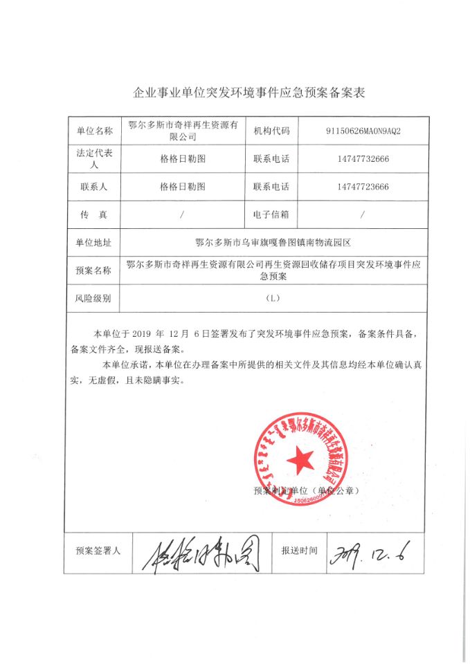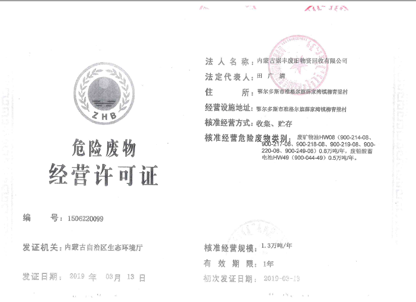 四、检测结论: 1、废气检测结论: 内蒙古腾峰环境检测有限公司于2019年12月1日-2日对《再生资源回收储存项目》无组织废气进行现场检测,经采样检测分析,该项目厂界四周非甲烷总烃最大值为0.29mg/m3,符合《大气污染物综合排放标准》(GB16297—1996)表2中新污染源大气污染物排放限值(非甲烷总烃浓度值4mg/m3),检测期间,非甲烷总烃排放浓度均符合要求。 2、地下水检测结论: 内蒙古腾峰环境检测有限公司于2019年12月1日-2日对《再生资源回收储存项目》地下水进行现场采样,共连续采样2天。2019年1月1日-2019年1月2日对采样结果进行检测,经检测分析,地下水各项检测因子均符合《地下水质量标准》(GB/T 14848-2017)Ⅲ类限值要求。 3、土壤检测结论: 内蒙古腾峰环境检测有限公司于2019年12月1日对《再生资源回收储存项目》土壤进行检测,分别对危废品暂存库、集液池、消防事故池、油品装卸区、围堰区进行采样分析,连续检测1天,共检测43项,其中氯甲烷、硝基苯、苯胺、2-氯酚的检测结果委托河南鼎泰检测技术有限公司出具。经检测分析,土壤各项检测因子均符合《土壤环境质量 建设用地土壤污染风险管控标准》(GB36600-2018)表1中的筛选值第二类用地标准。 4、噪声检测结论: 内蒙古腾峰环境检测有限公司于2019年12月1日-2日进行现场检测,经检测分析,厂界四周布设4个检测点位,昼间为46.4dB(A)—49.4dB(A),夜间为44.3dB(A)—47.9dB(A),符合《工业企业厂界环境噪声排放标准》(GB12348-2008)2类标准昼间60dB(A)、夜间50dB(A)的限值要求。 五、建设单位环保组织机构及规章管理制度 本项目根据《建设项目环境保护管理条例》及有关文件精神,结合工程的实际情况,在项目的立项、施工、竣工等过程中,基本执行了环境管理程序。在执行国家建设项目环境管理制度的过程中,基本保证了环保措施设施与主体工程同时设计、同时施工、同时投产使用。 本公司的环保档案齐全,有专职人员在建设期及生产运营期对环境产生污染环节做出相应的防治措施,并由专人负责环境保护工作。企业编制了环境风险应急预案并到乌审旗环境保护局备案,备案编号:150626-2019-037-L。 六、建设期间是否发生了扰民和污染事故 项目在建设期间未发生过扰民和污染事件。 |