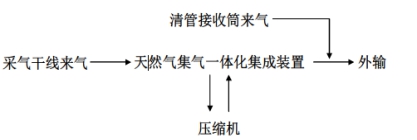 5、公用工程 (1)给水工程 项目无生产用水,集气站属无人值守站,不涉及生活用水,因此无新增用水 (2)排水工程 项目废水主要为气液分离产生的气液分离废水(采出液),主要成分为凝结水和凝析油,天然气含水率为 0.4m3(气中凝析水)/104m3(气),集气站可分离出气田水产生量的 20%,改扩建项目新增分离废水约 45m3/d。气液分离废水在3 座 30m3 玻璃钢污水罐罐暂存,由管道输送至第一天然气处理厂处理。 (3)供暖 集气站无人值守,未建设供暖设施。 (4)供电 项目用电依托现有 10/0.4kV 变电站提供,年新增用电量为 45 万 kW·h,现有变电站负荷能够满足项目日常生产生活用电需求。 (5)通讯 项目实现话音、网络、数据、电视、集气站电视监控。 (6)消防 依据《石油天然气工程设计防火规范》(GB50183-2016)有关规定,站内不设给水消防,配置一定数量的移动式灭火器材即可。 6、工程建设规模 项目设计集气能力为150×104m3/d,实际集气能力为150×104m3/d。 7、工艺流程 1.施工期工艺流程简述 施工期内容主要包括新增进站干管截断区、天然气集气一体化集成装置、压缩机设备。施工期工艺流及产污环节见图3。