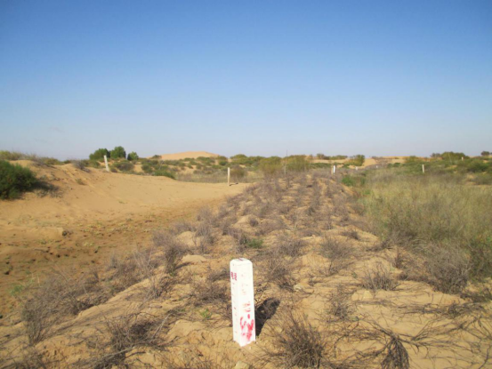 1 | 沙地 | 19.492 | 116952m2 | 作业带采用插播沙蒿网格(1m×1m)进行植被恢复作业,并播撒沙蒿、柠条等事宜当地植被恢复的草籽1756kg。 | 100% |