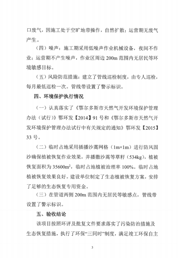 (13)《鄂尔多斯市环境保护局关于天然气开发环境保护管理办法试行中有关事宜的通知》,鄂环发【2015】33号。