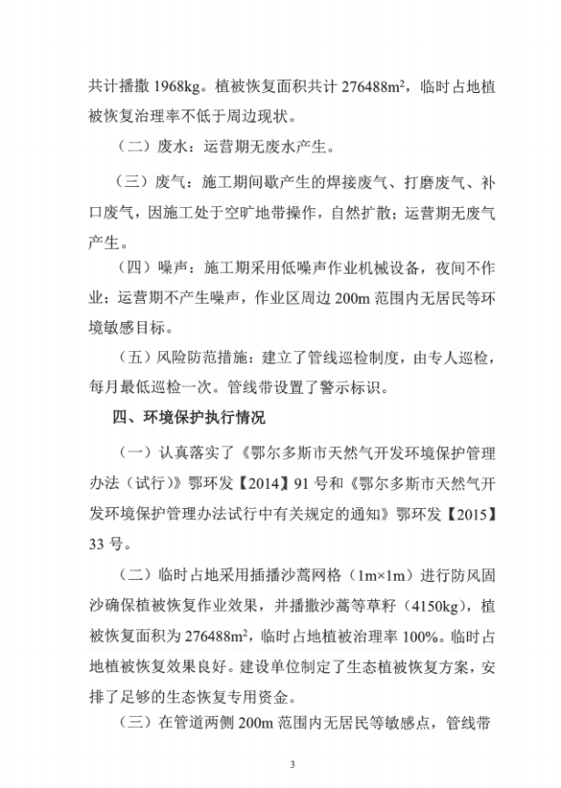 (13)《鄂尔多斯市环境保护局关于天然气开发环境保护管理办法试行中有关事宜的通知》,鄂环发【2015】33号。