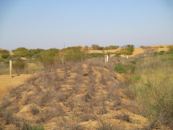 1 | 沙地 | 18172 | 145376m2 | 作业带采用插播沙蒿网格(1m×1m)进行植被恢复作业,并播撒沙蒿、柠条等事宜当地植被恢复的草籽2182kg。 | 100% |