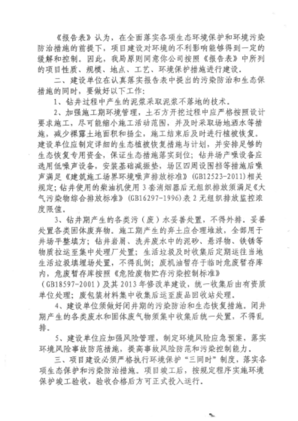 (7)《建设项目竣工环境保护验收技术规范 石油天然气开采》国家环境保护部【2011】10号,2011年6月1日;