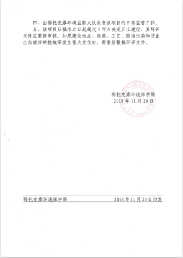 环评审批单位 | 原鄂托克旗环境保护局 |