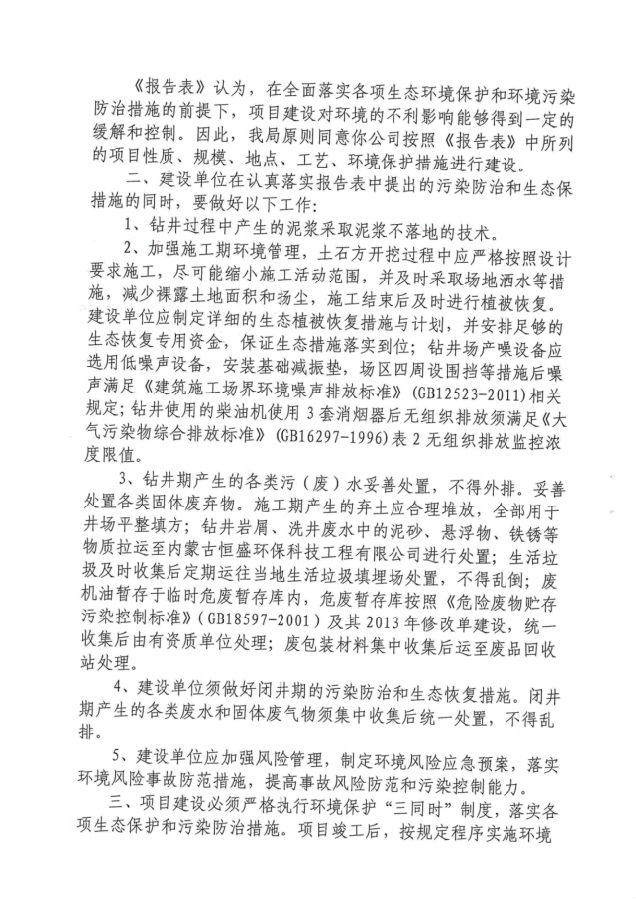 (13)《鄂尔多斯市环境保护局关于天然气开发环境保护管理办法试行中有关事宜的通知》,鄂环发【2015】33号。