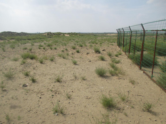 项目占地均为沙地和草地,不占地农田和林地,全部为单井井场。每座井场占地面积为4420m2,其中临时占地面积为4300m2,永久占地面积为120 m2,植被恢复率96%。