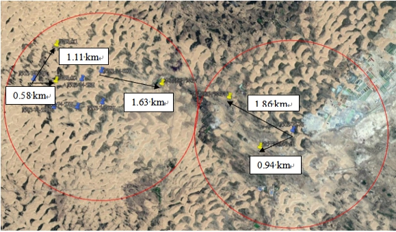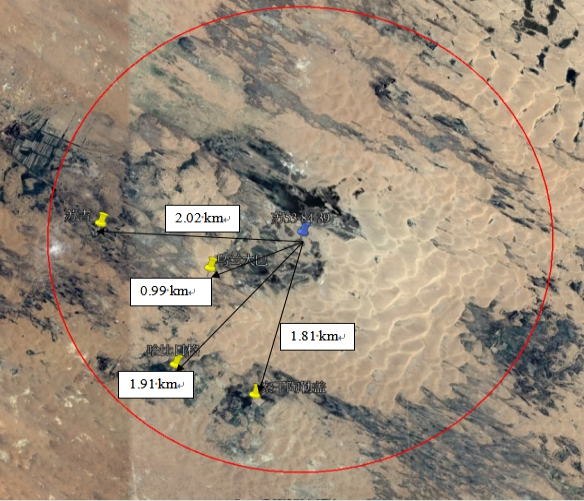 (8)工程占地:本项目占地均为沙地和草地,不占地农田和林地,全部为单井井场。每座井场占地面积为4420m2,其中临时占地面积为4300m2,永久占地面积为120 m2,井场总占地面积为112640 m2。具体情况见表1.2-1。