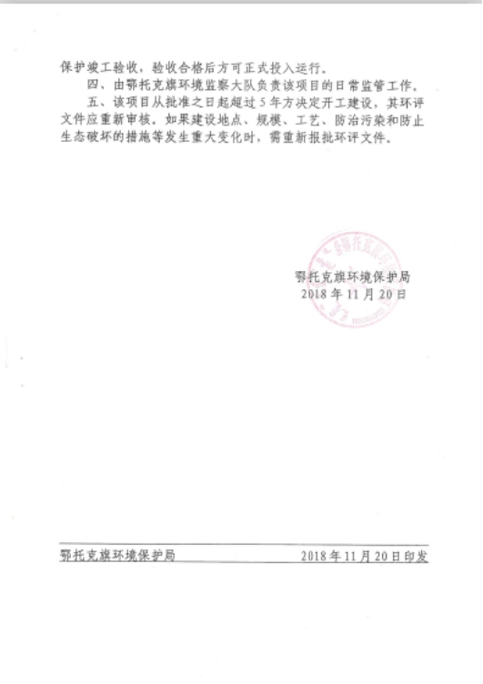 环评审批单位 | 原鄂托克旗环境保护局 |