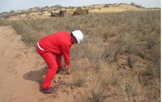 全部 井场 | 67200m2 | 沙地 | 42880 | 临时占地的土地平整、覆土、播撒沙蒿等事宜当地生长的植物草籽 | 临时占地总面积67200m2植被恢复面积约51200m2。该项目共建设进场道路4条,总面积为2280m2,巡检车定期通过进场道路巡检,不进行植被恢复,恢复率为76% |