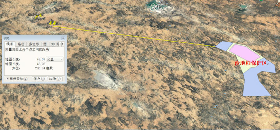 (4)按施工作业带宽度确定植被恢复范围,采用插播沙蒿网格固沙,尺寸为750px×750px,并洒草籽10kg/亩。