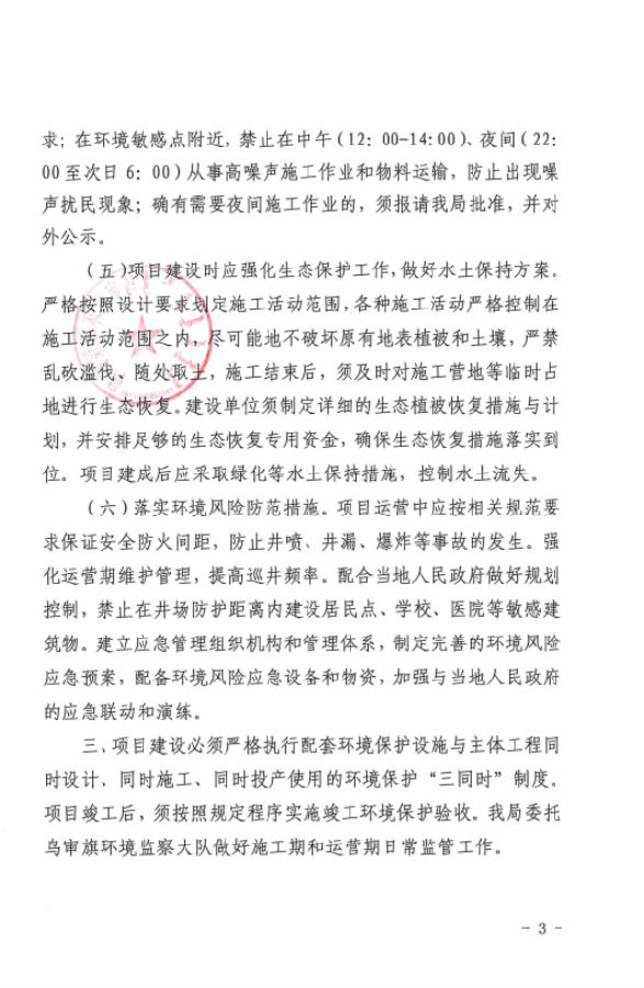 (13)《鄂尔多斯市环境保护局关于天然气开发环境保护管理办法试行中有关事宜的通知》,鄂环发【2015】33号。