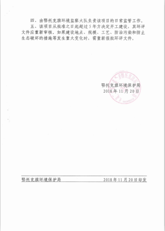 环评审批单位 | 原鄂托克旗环境保护局 |