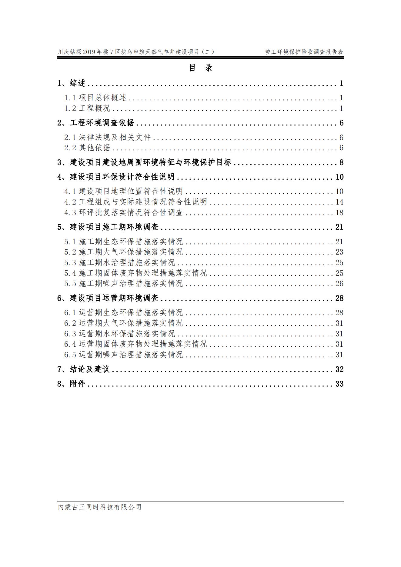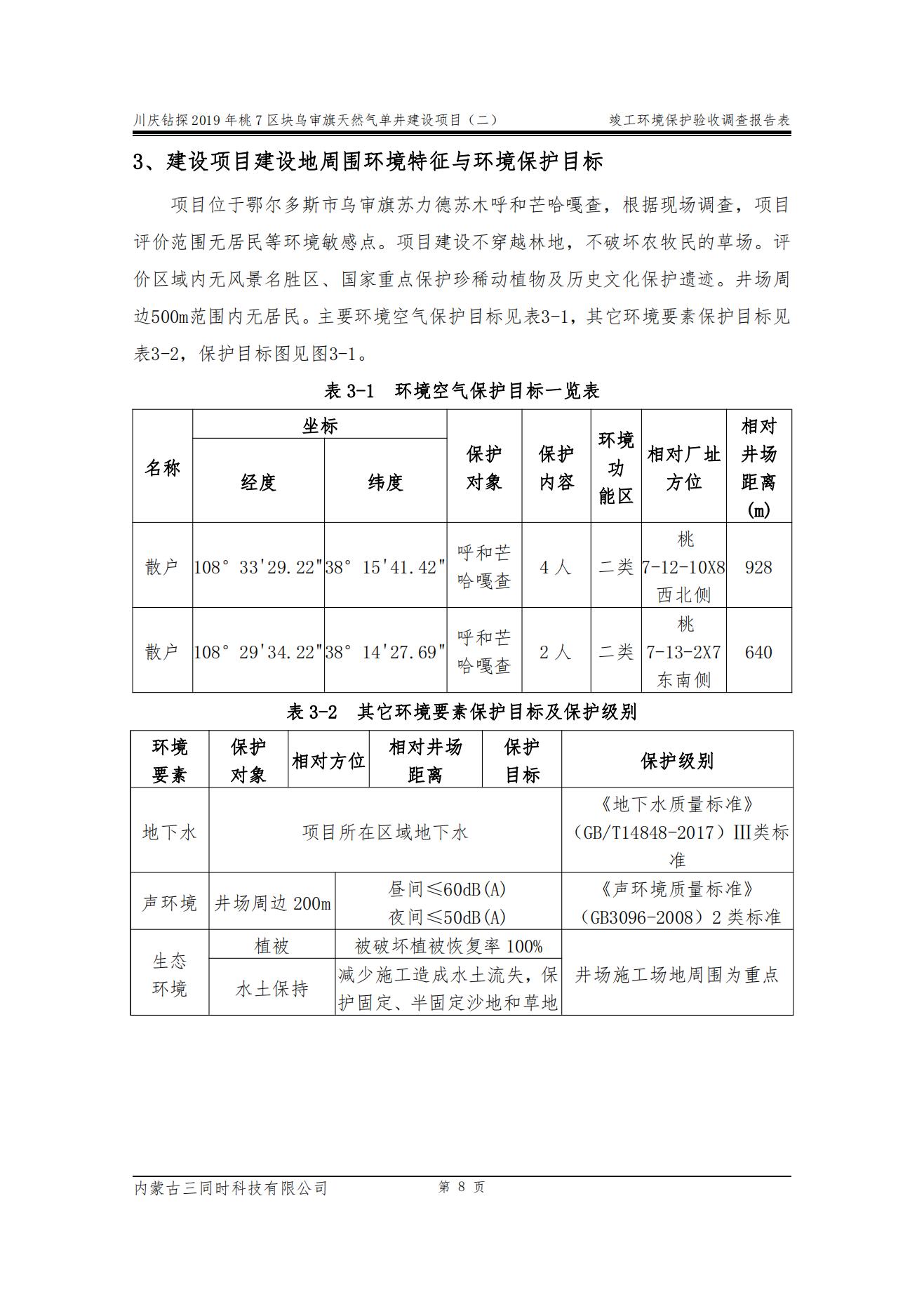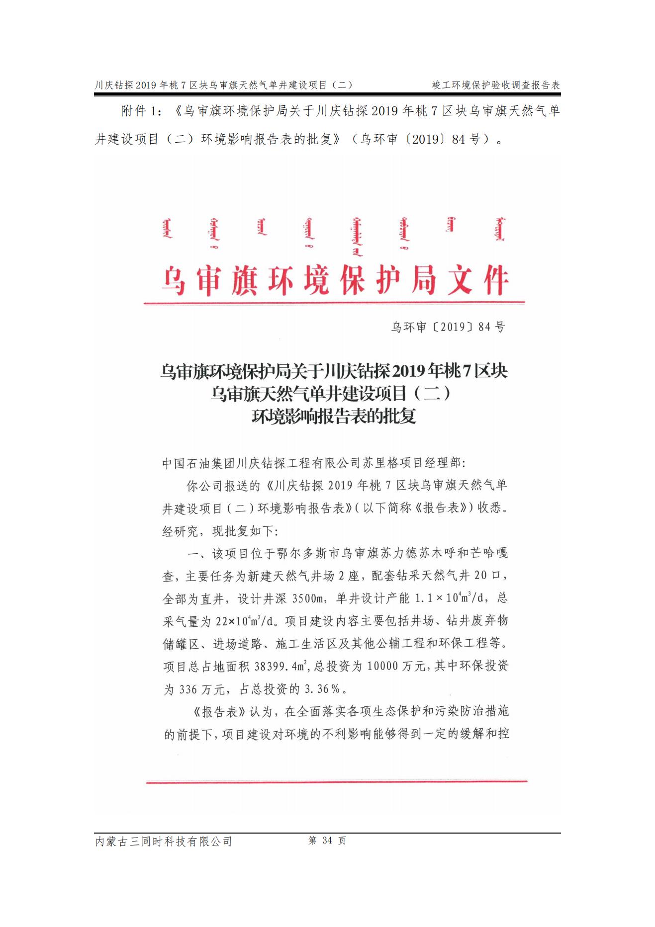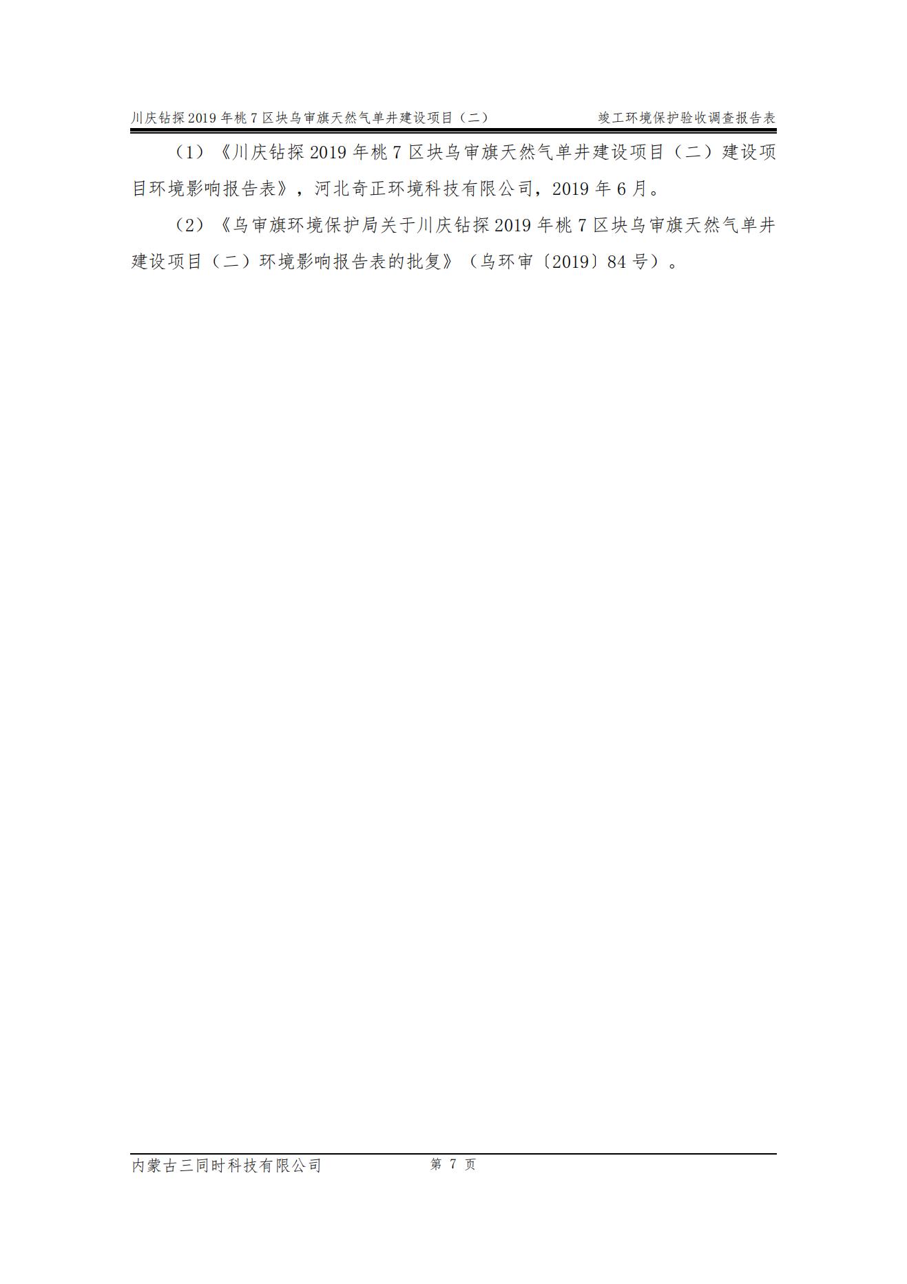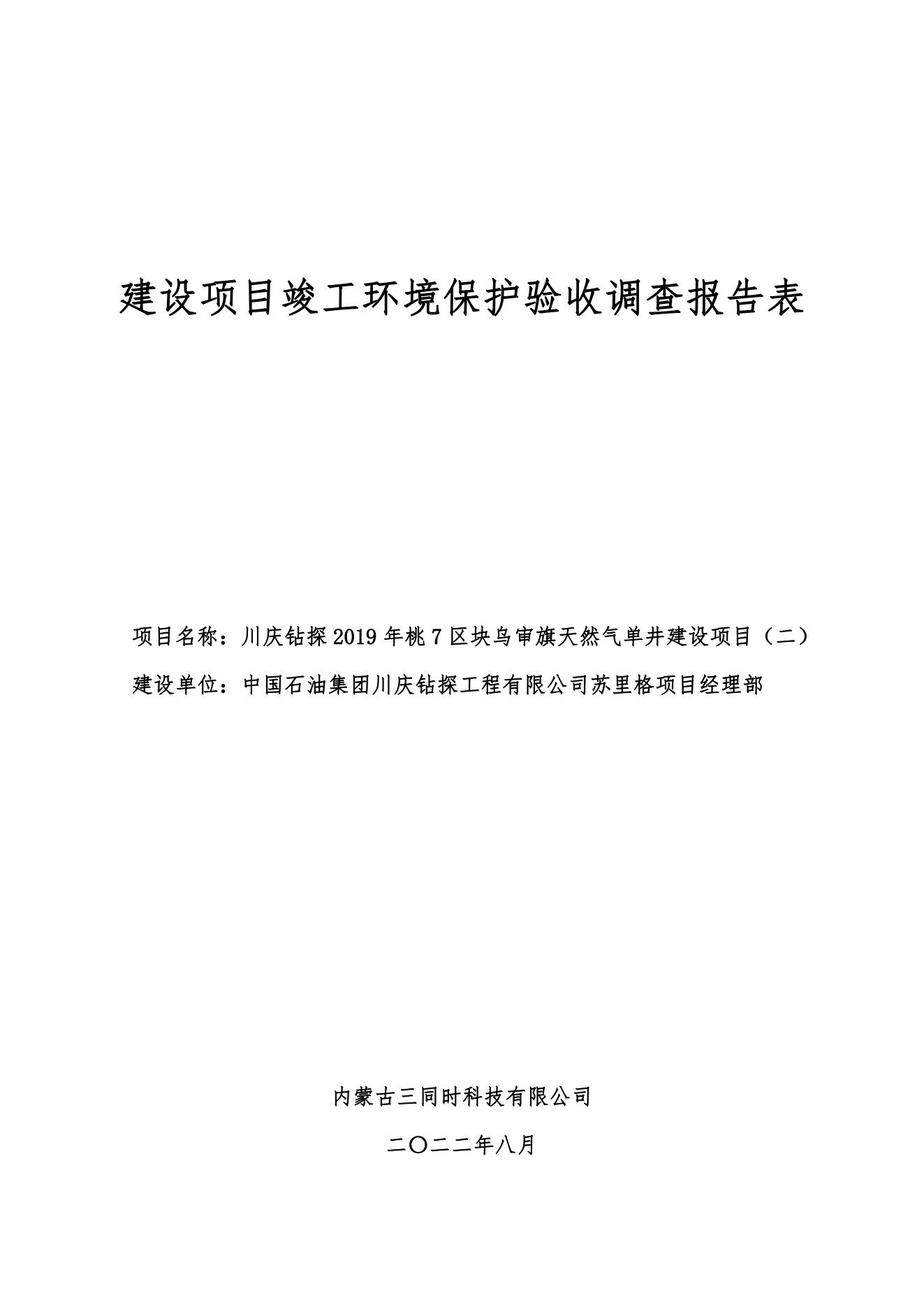 川庆钻探2019年桃7区块乌审旗天然气单井建设项目(二) 竣工环境保护验收调查报告(1)