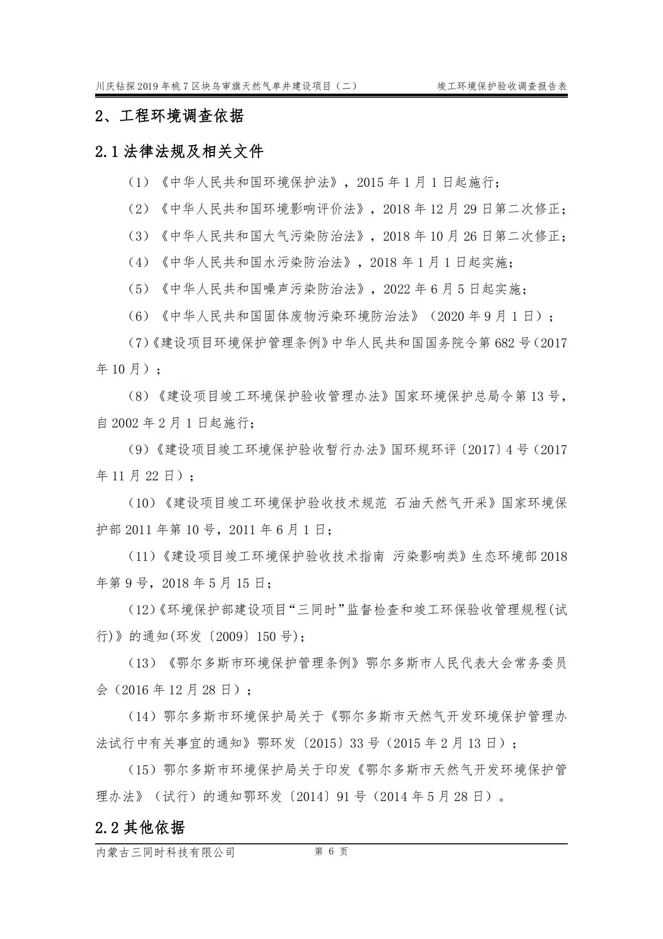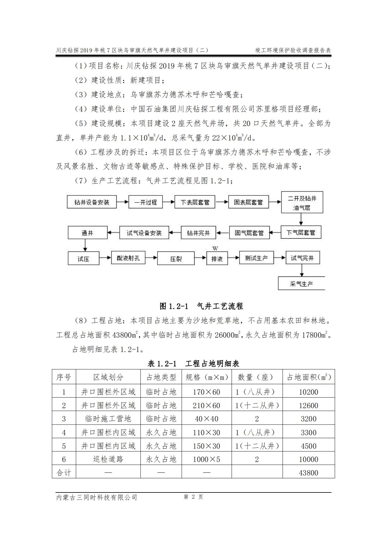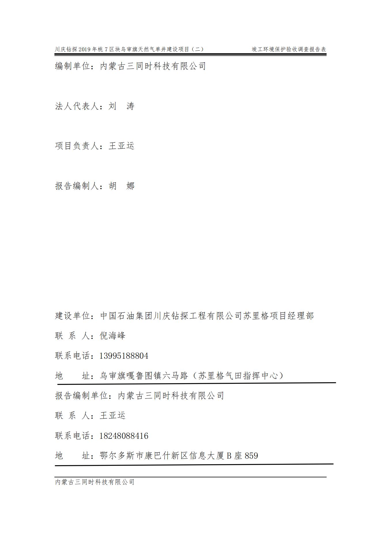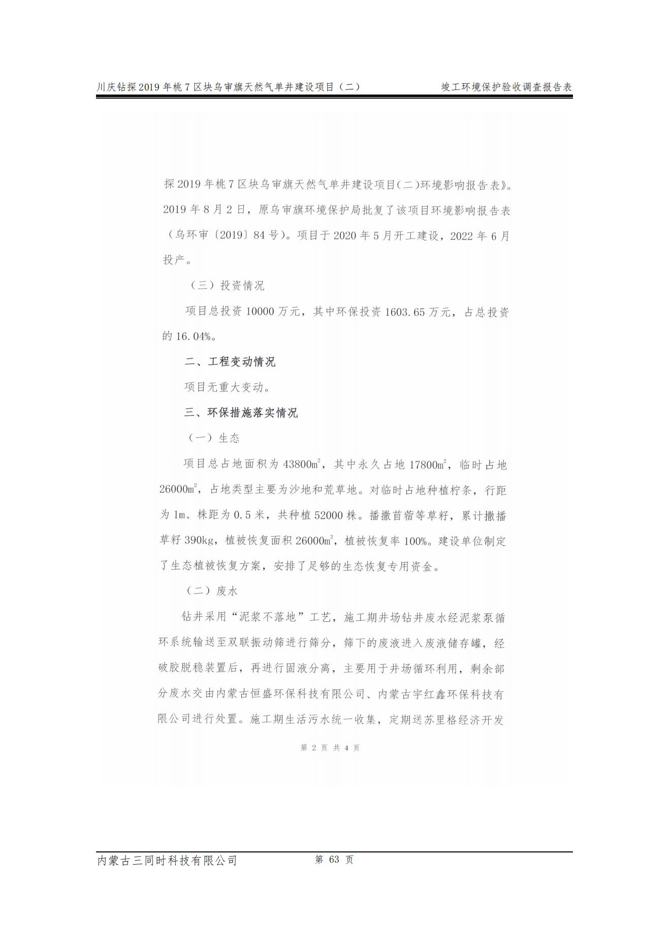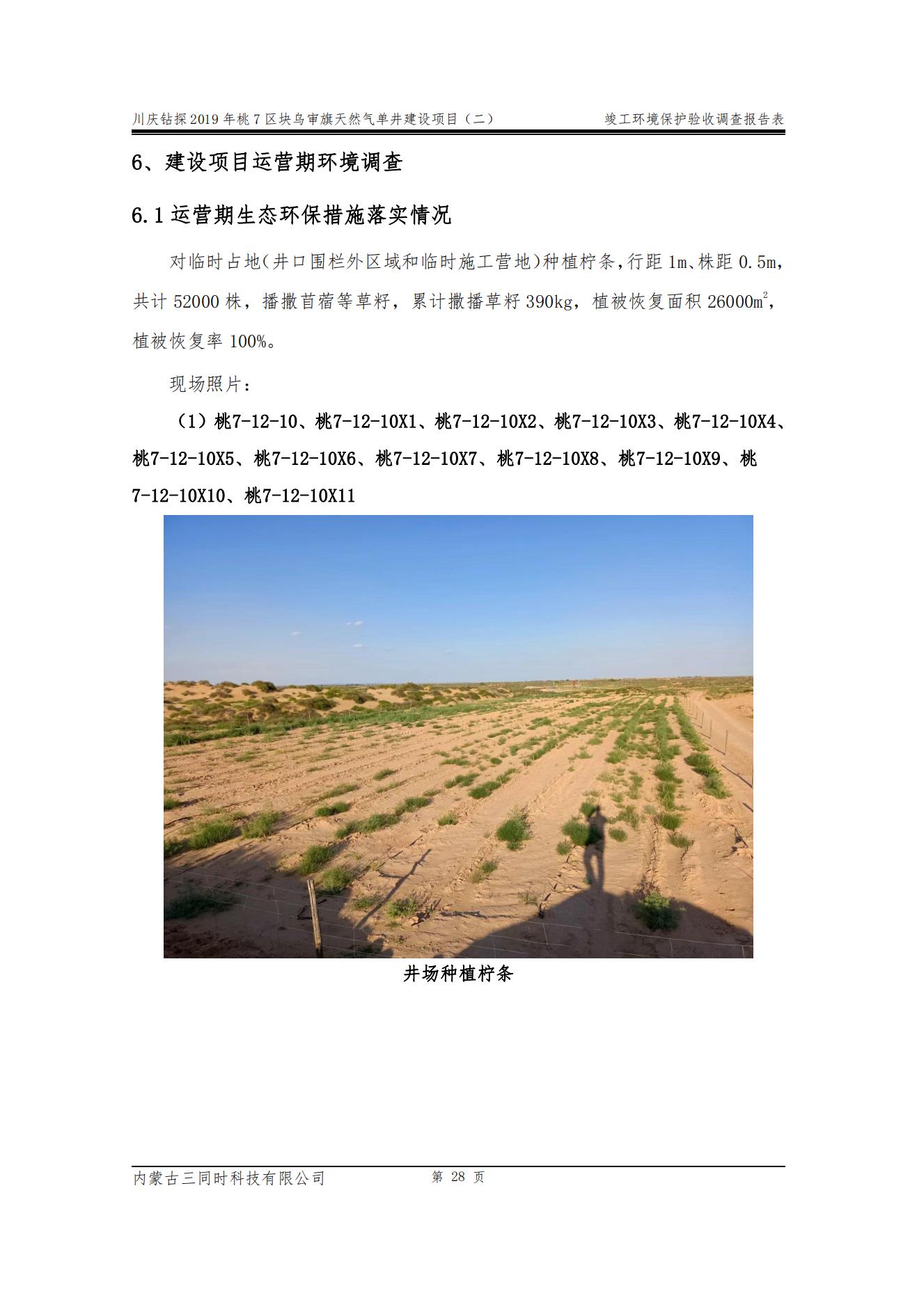 川庆钻探2019年桃7区块乌审旗天然气单井建设项目(二) 竣工环境保护验收调查报告(1)