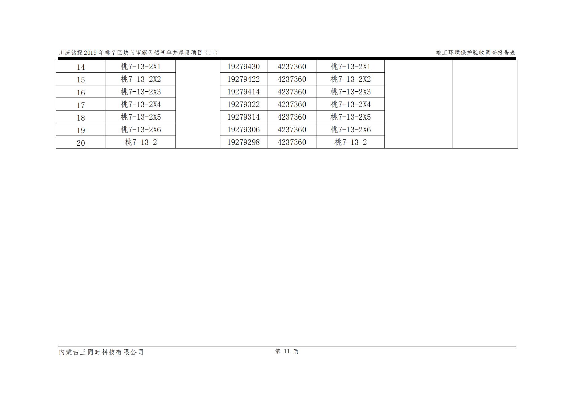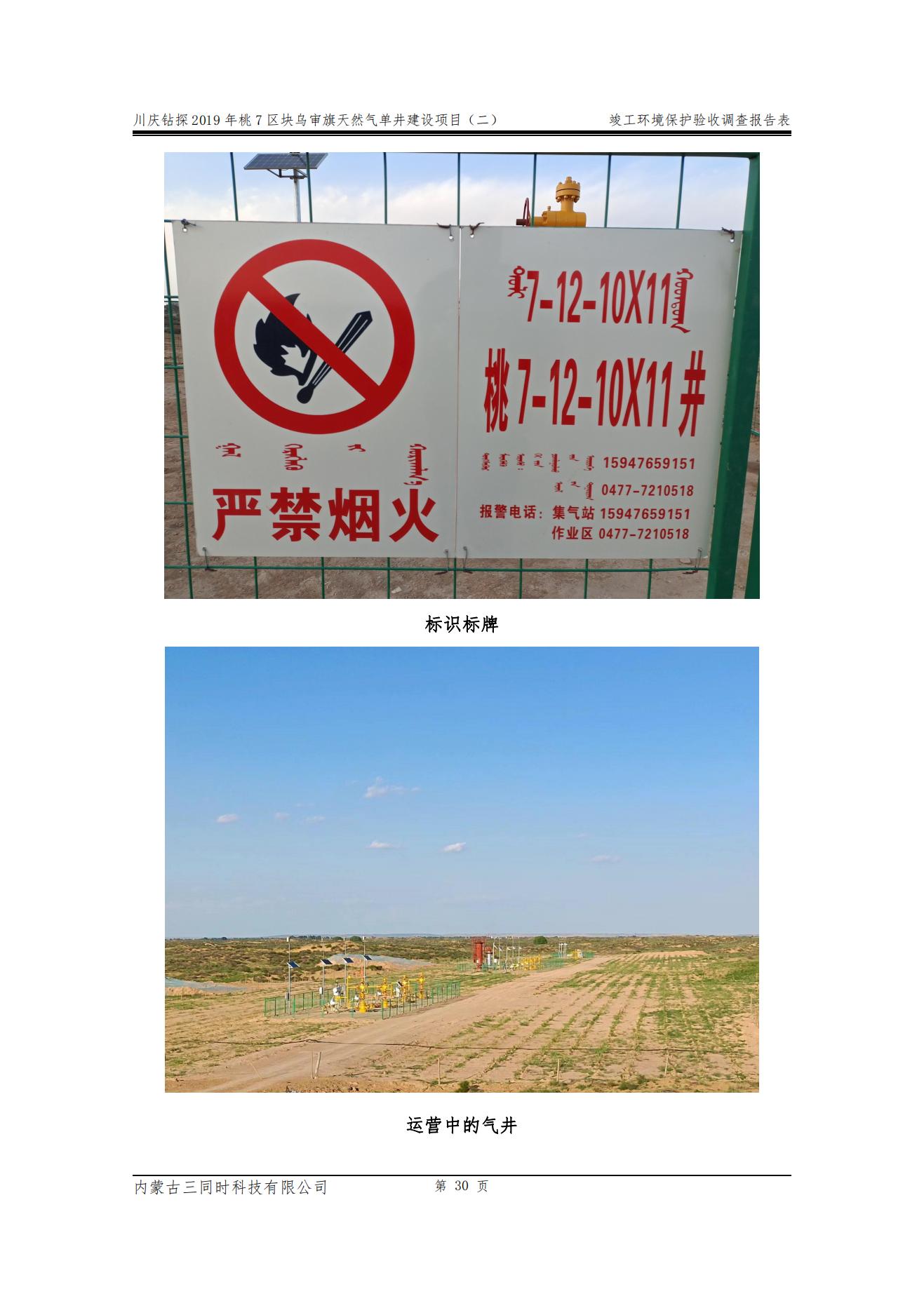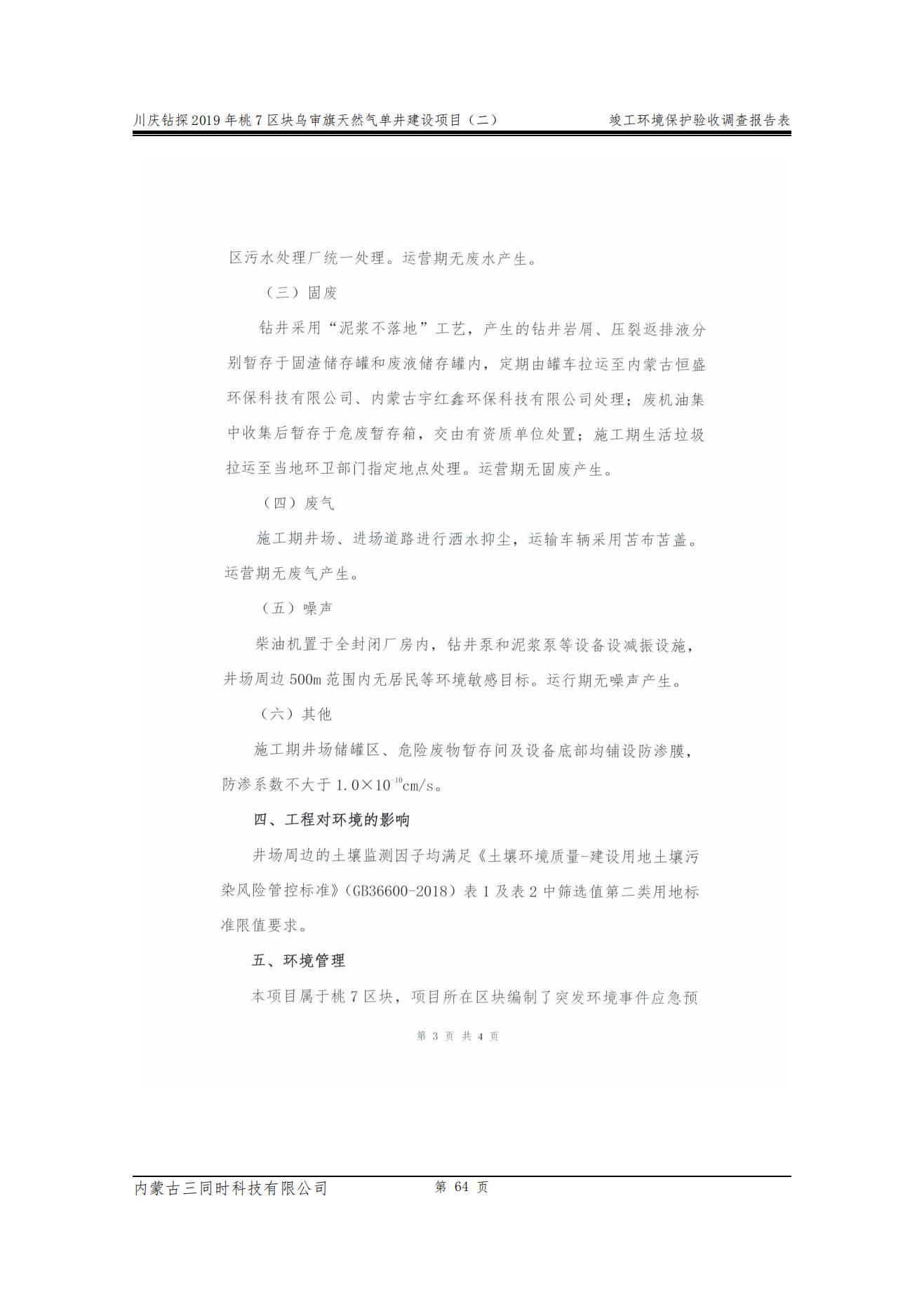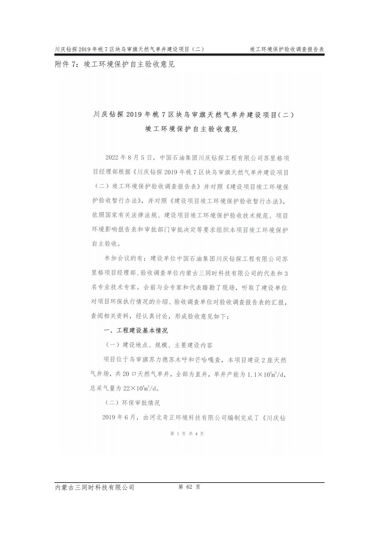 川庆钻探2019年桃7区块乌审旗天然气单井建设项目(二) 竣工环境保护验收调查报告(1)