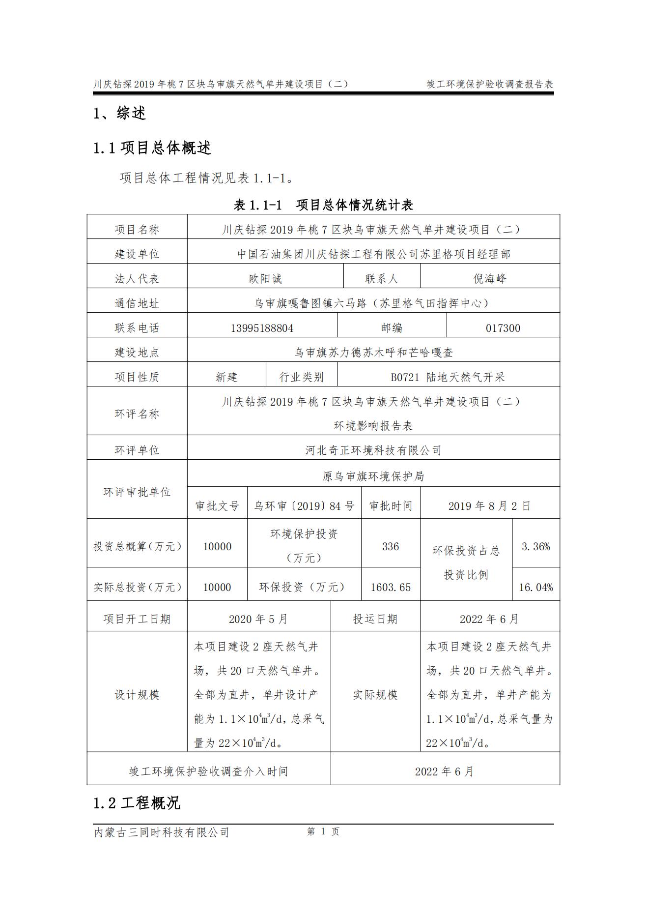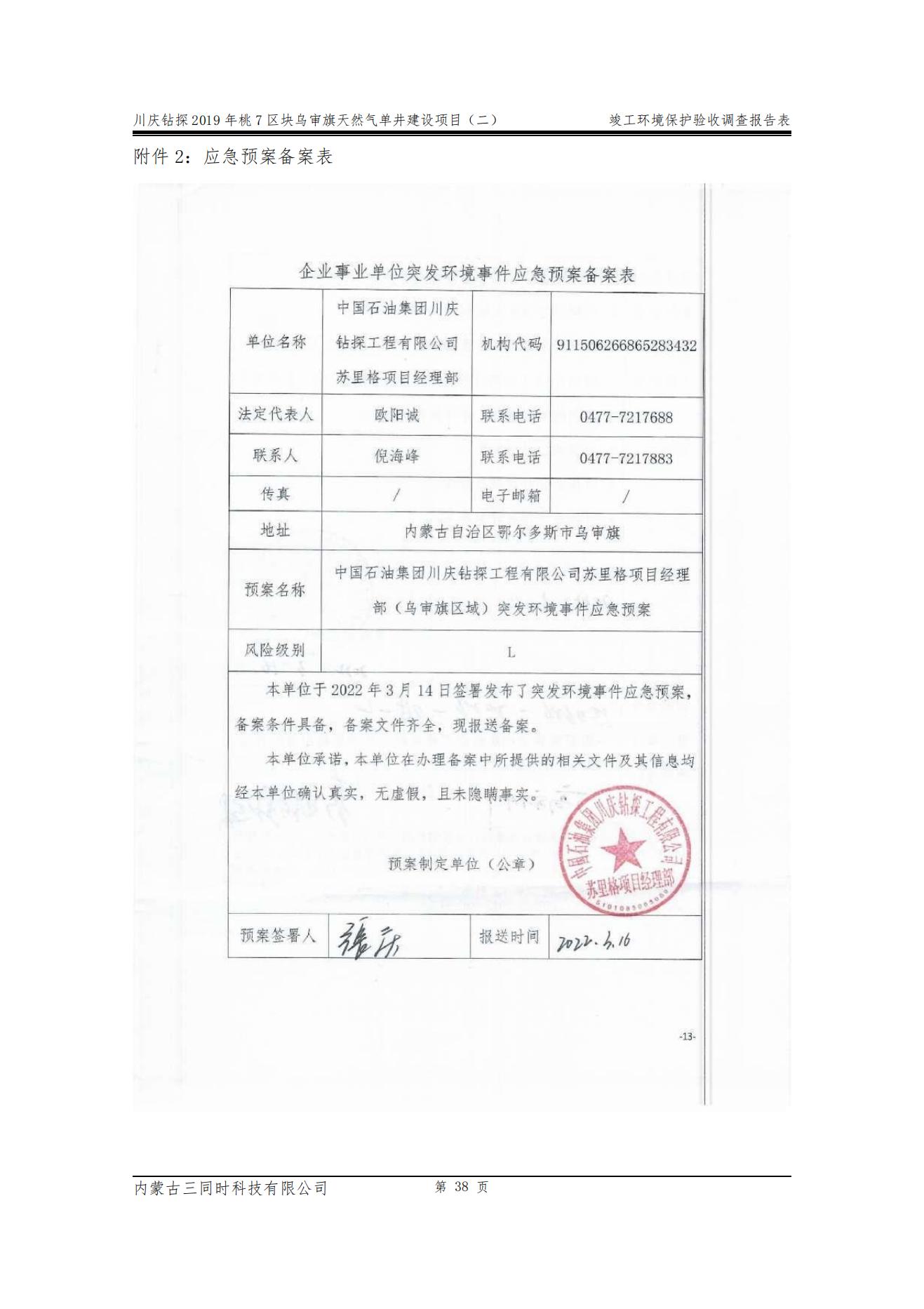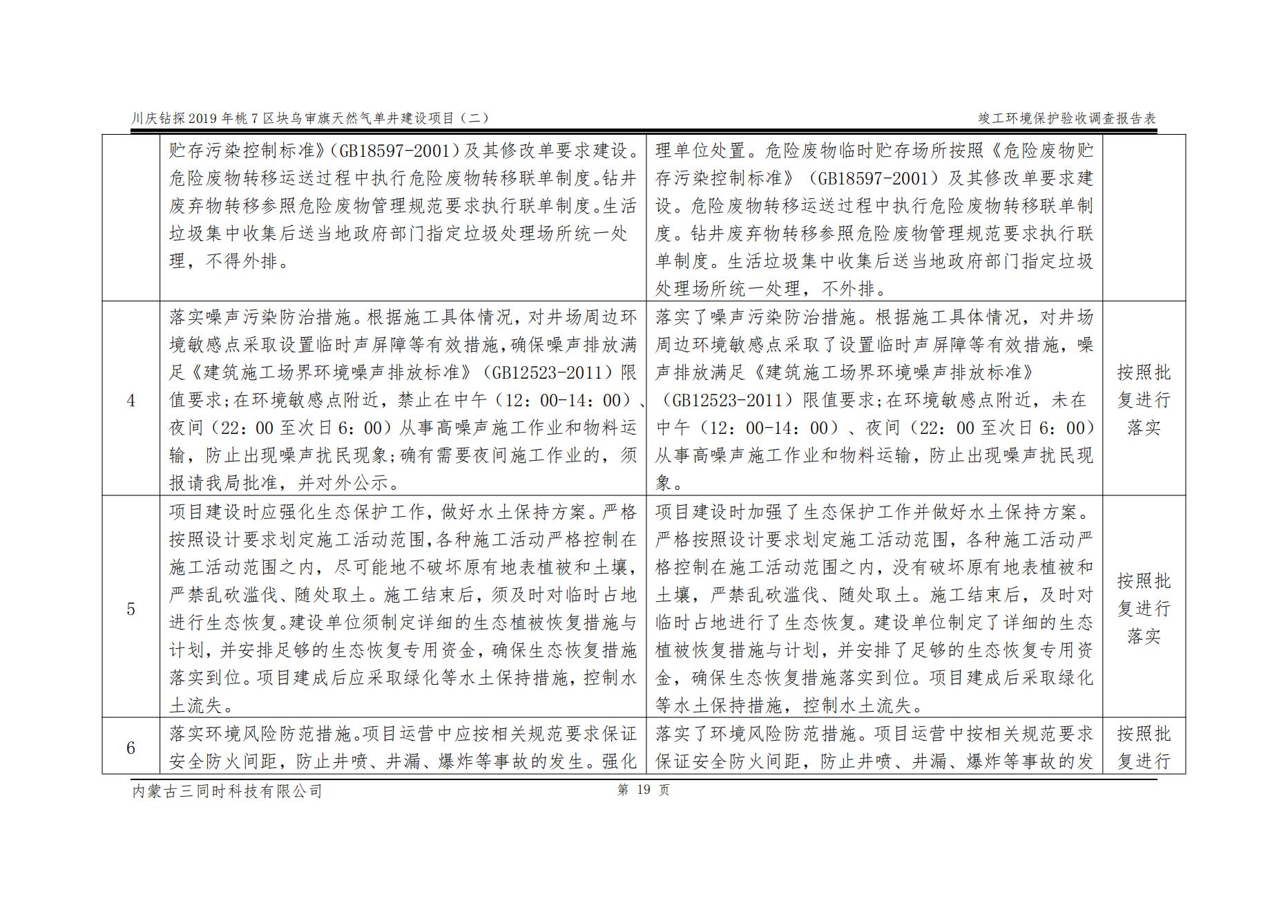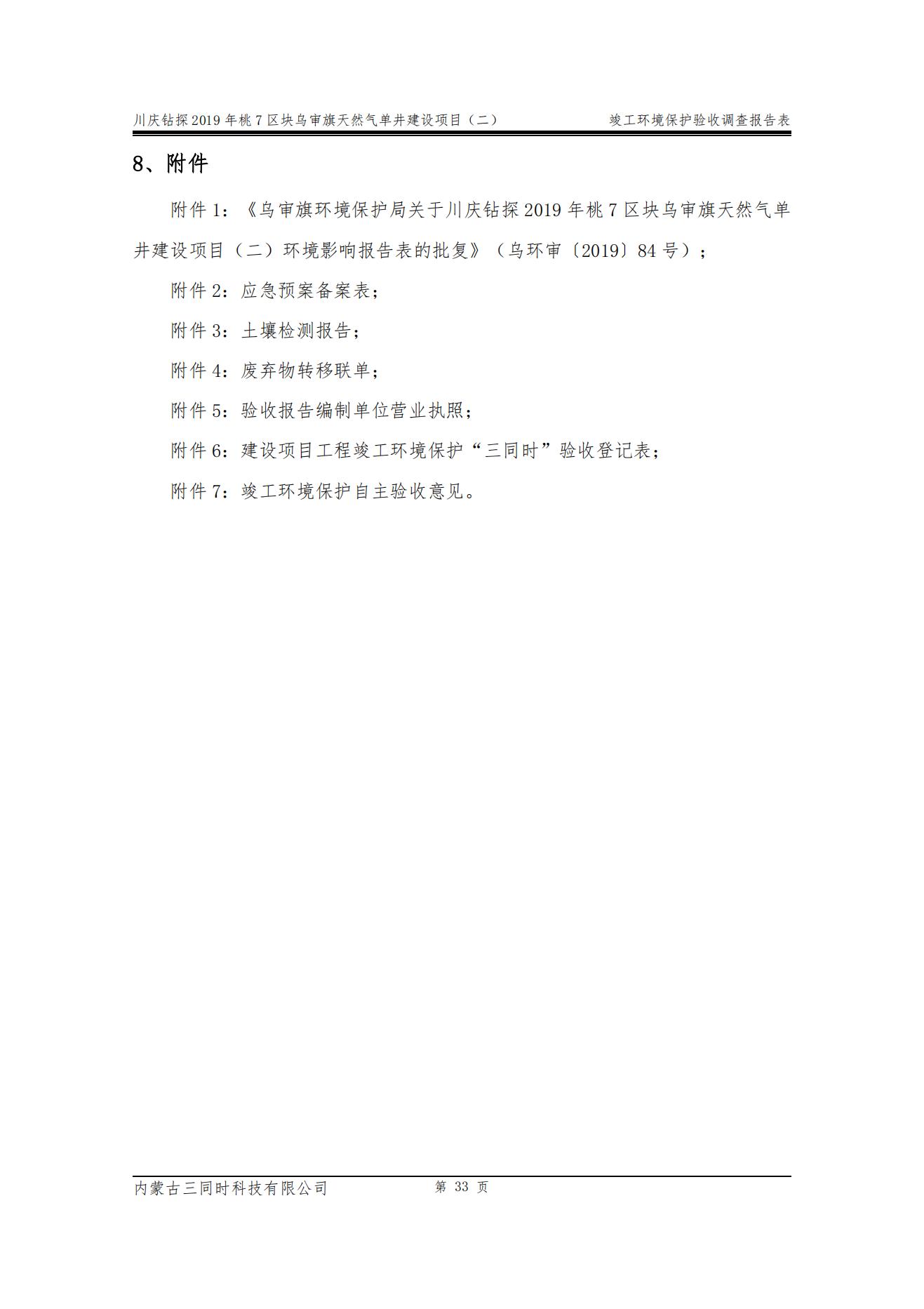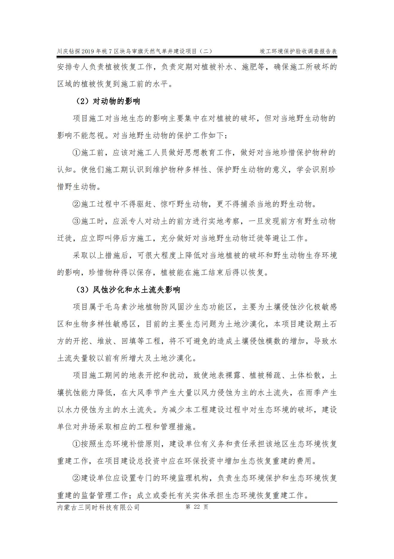 川庆钻探2019年桃7区块乌审旗天然气单井建设项目(二) 竣工环境保护验收调查报告(1)