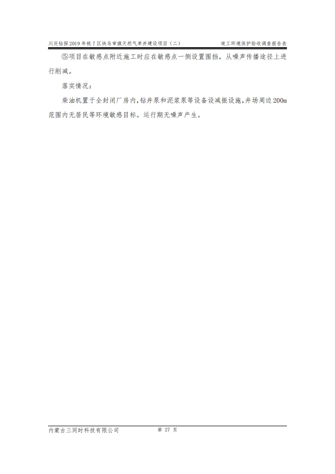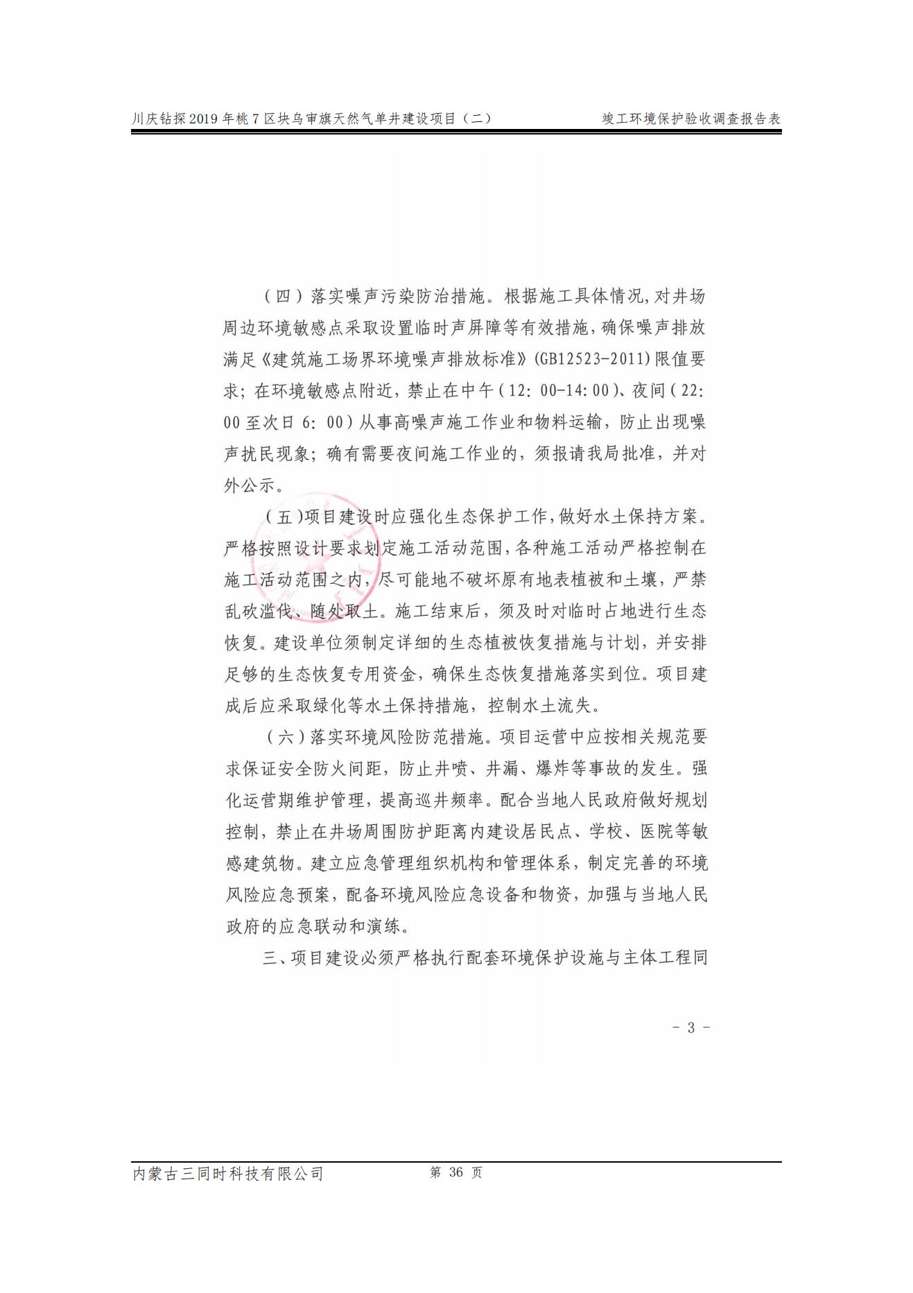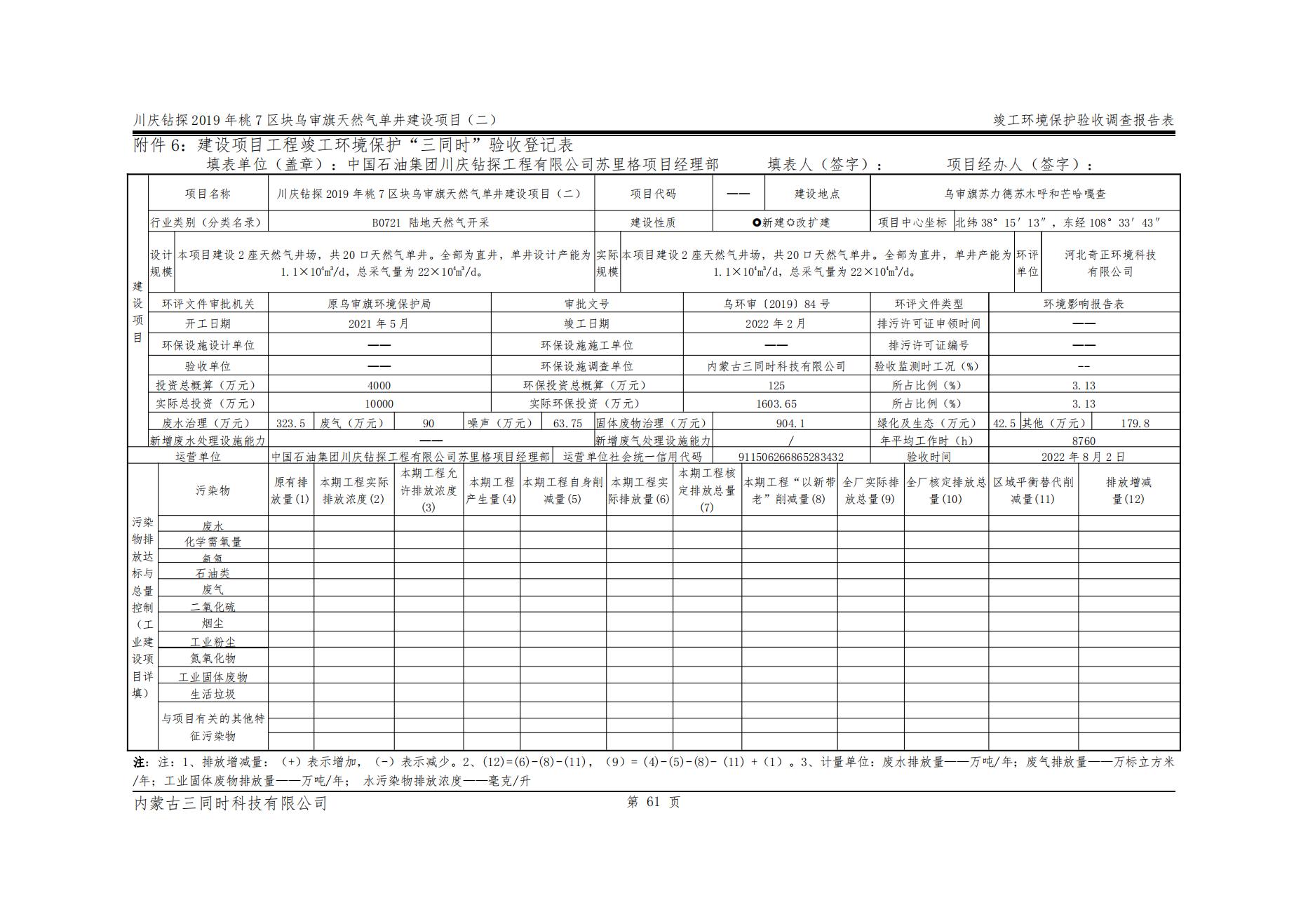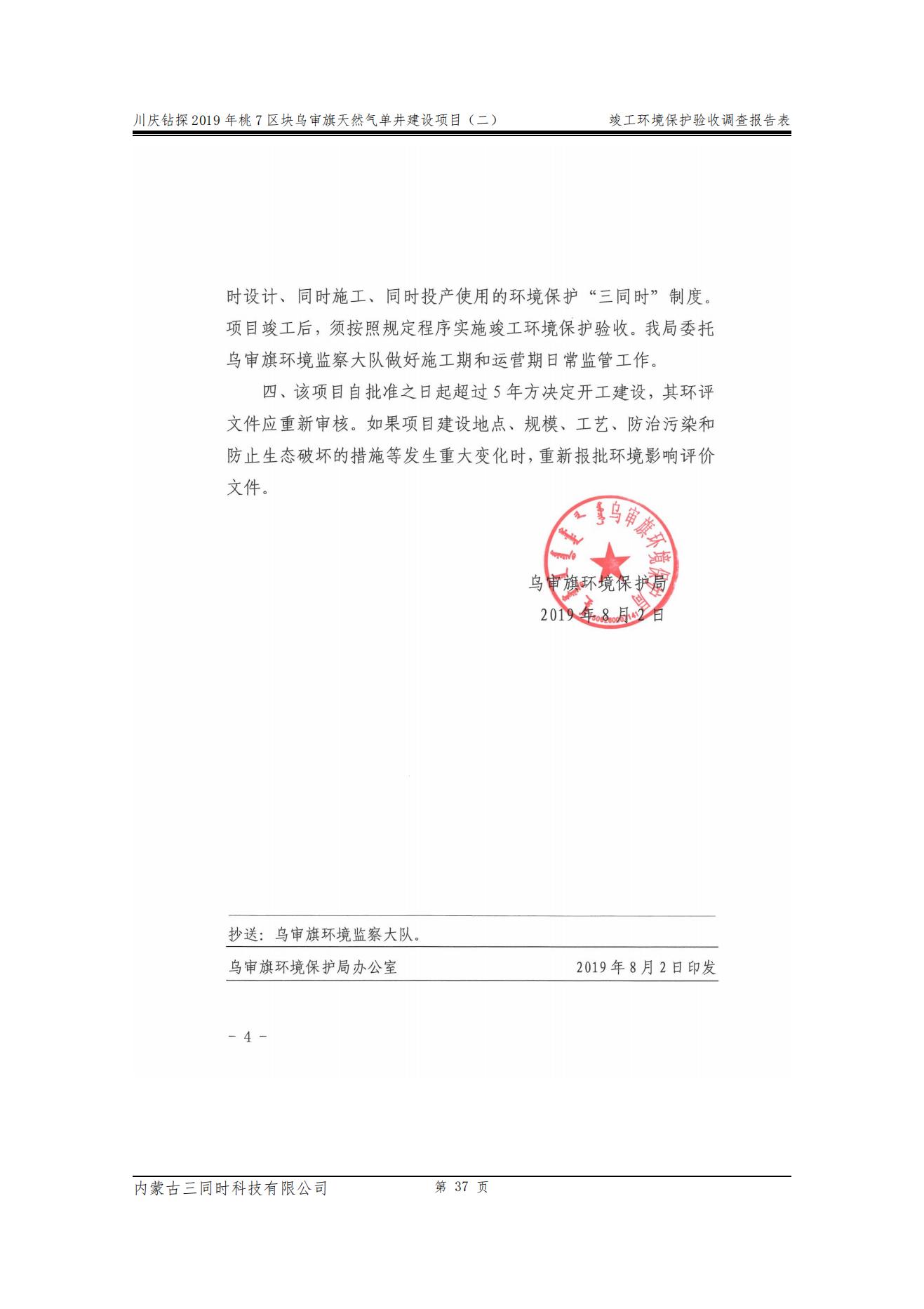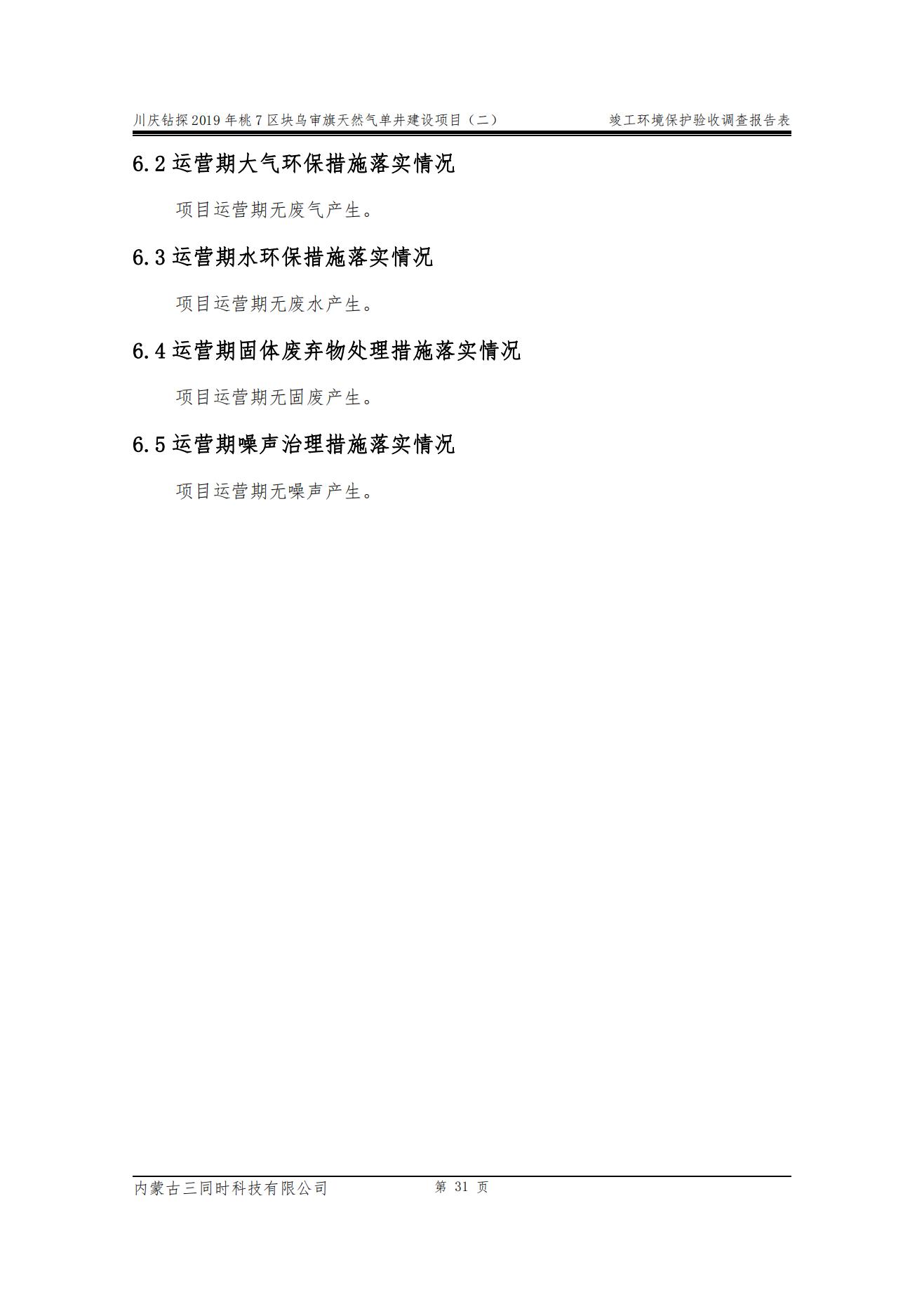 川庆钻探2019年桃7区块乌审旗天然气单井建设项目(二) 竣工环境保护验收调查报告(1)