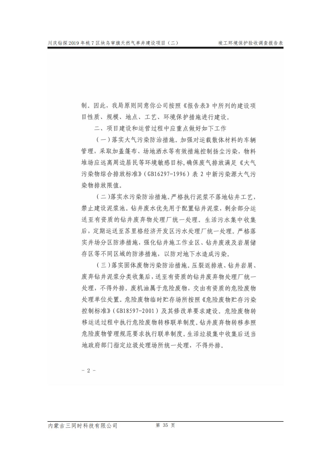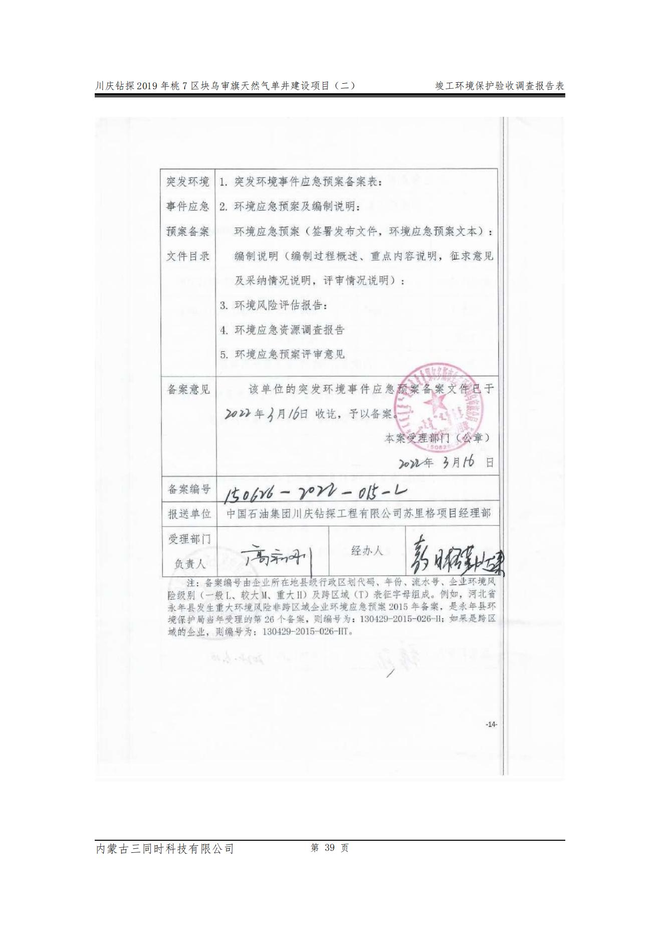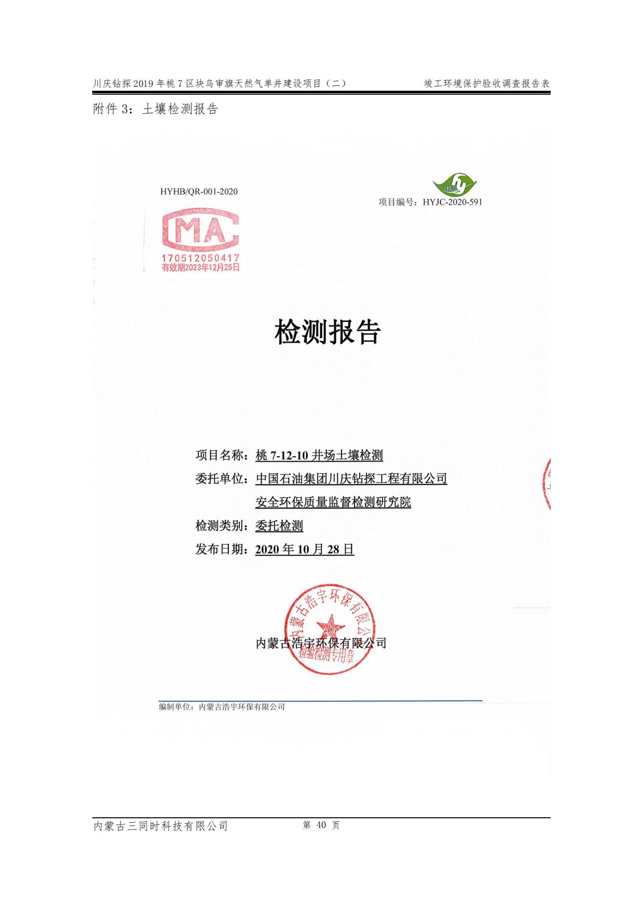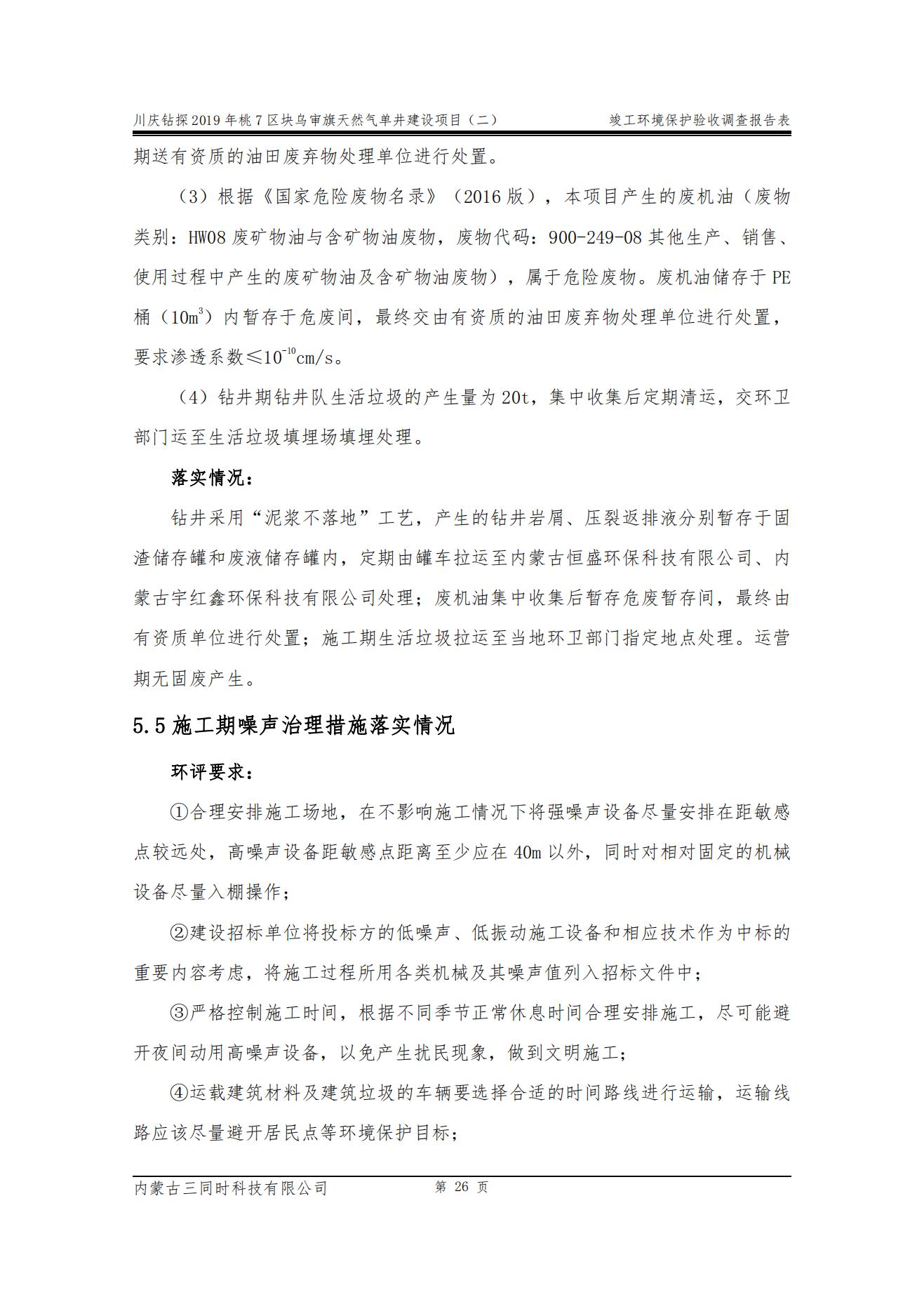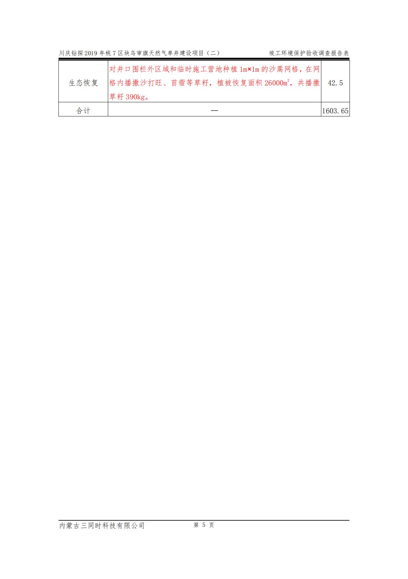 川庆钻探2019年桃7区块乌审旗天然气单井建设项目(二) 竣工环境保护验收调查报告(1)