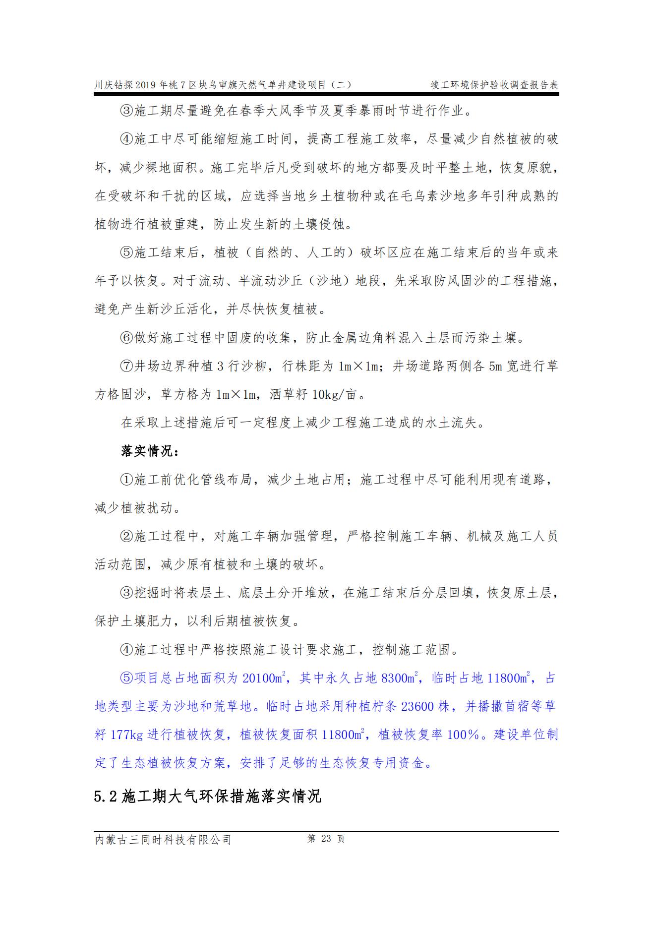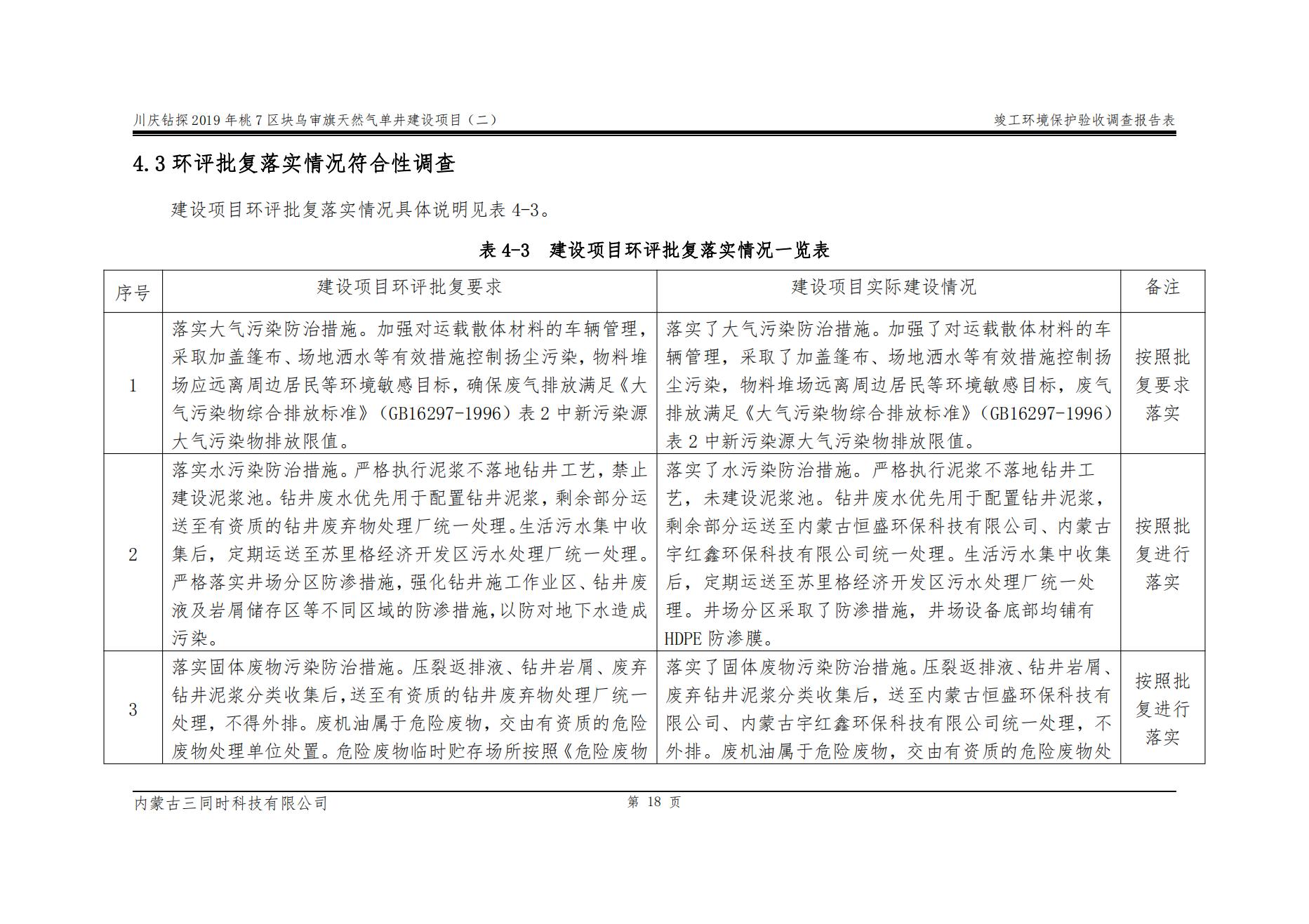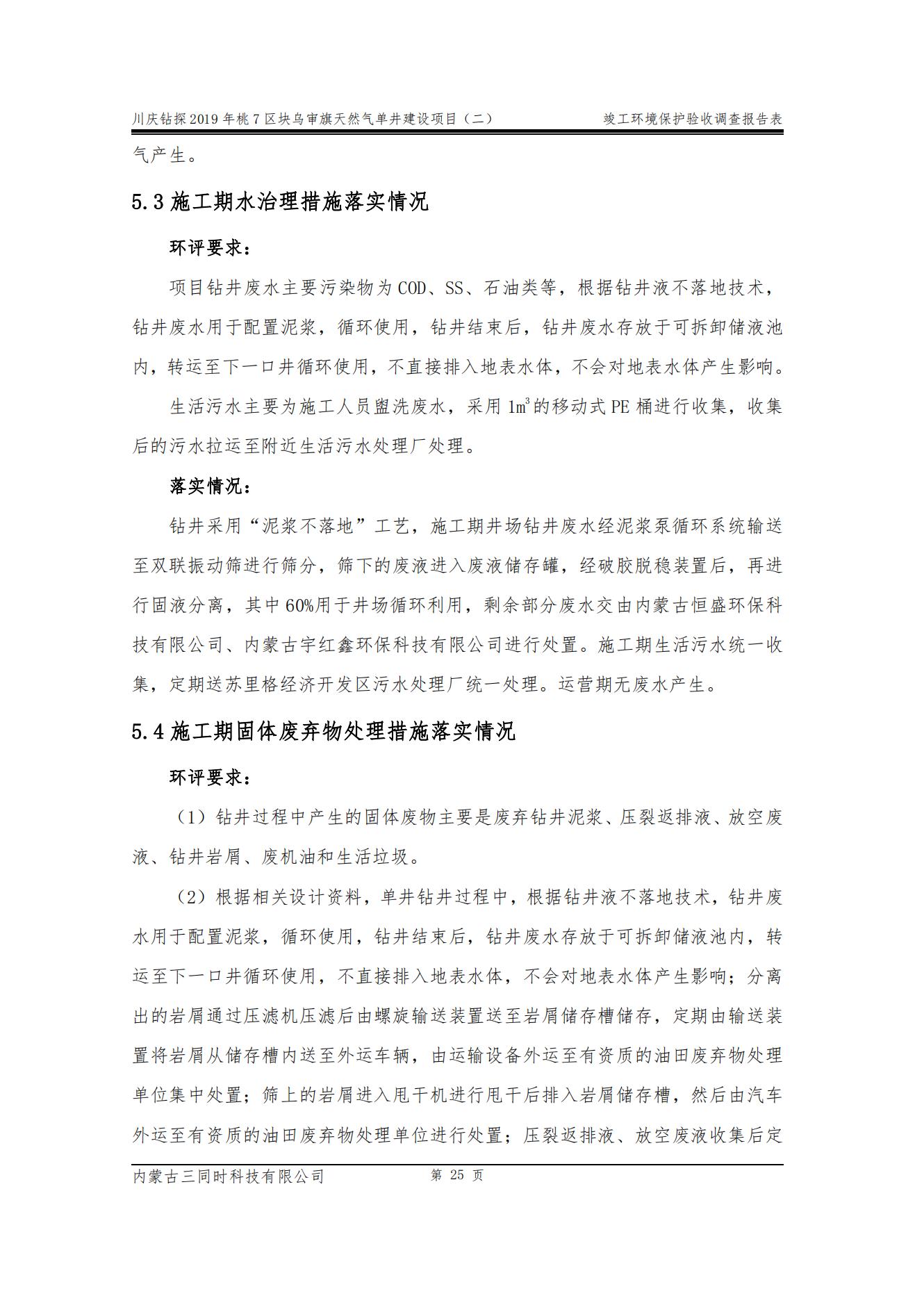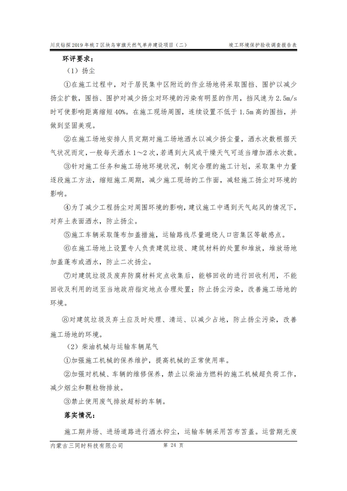 川庆钻探2019年桃7区块乌审旗天然气单井建设项目(二) 竣工环境保护验收调查报告(1)