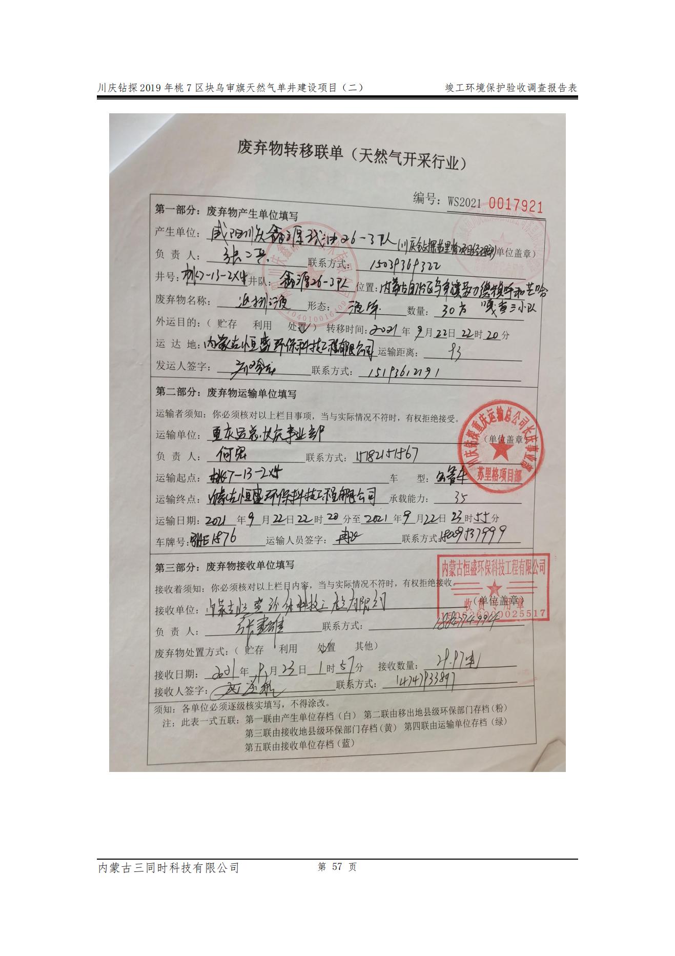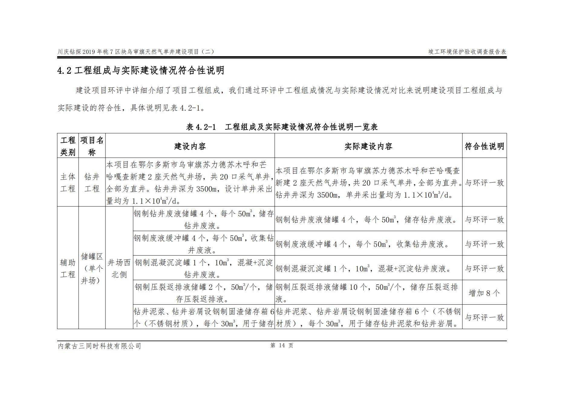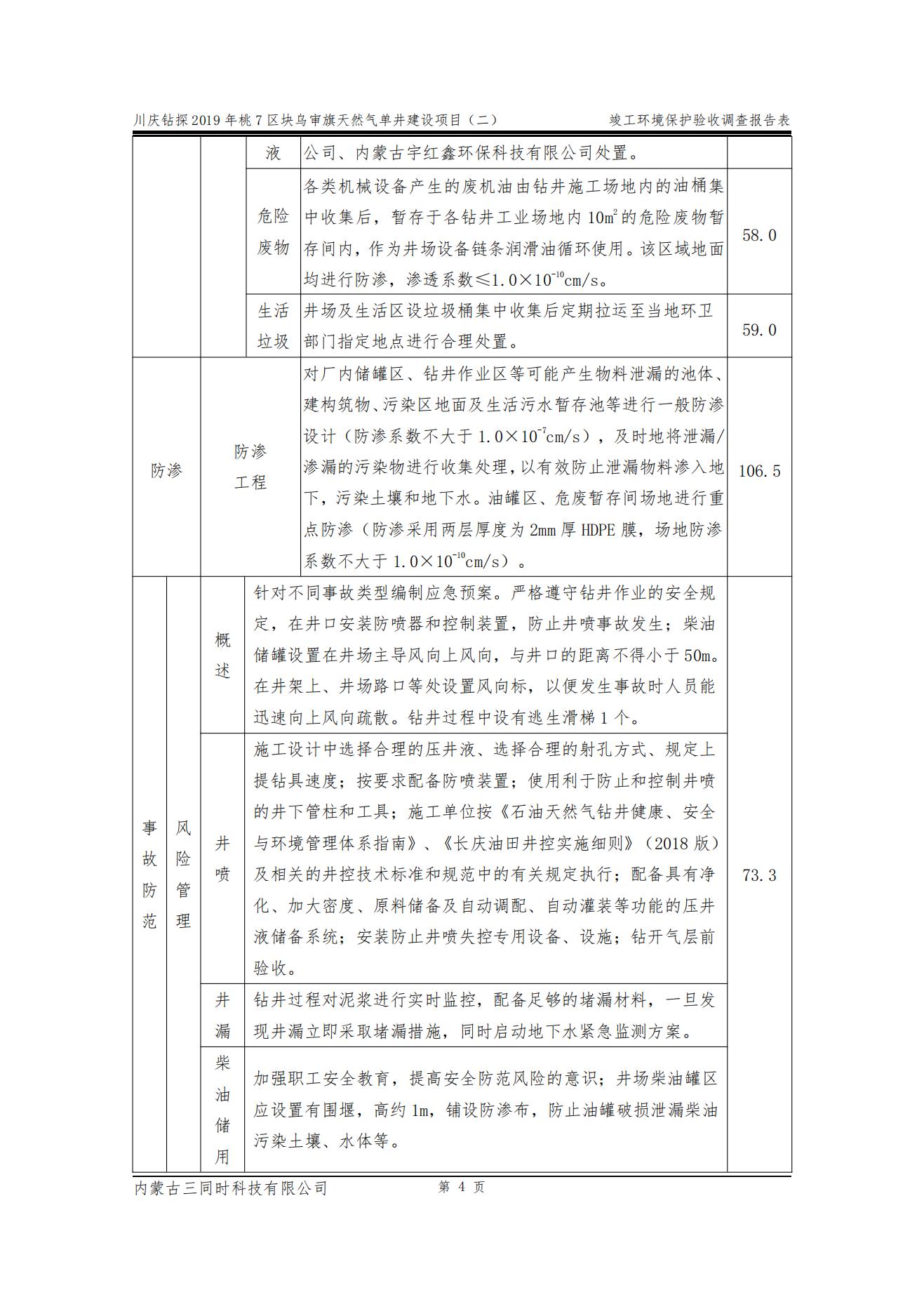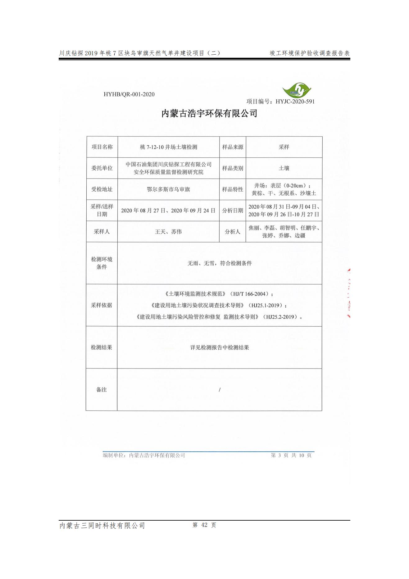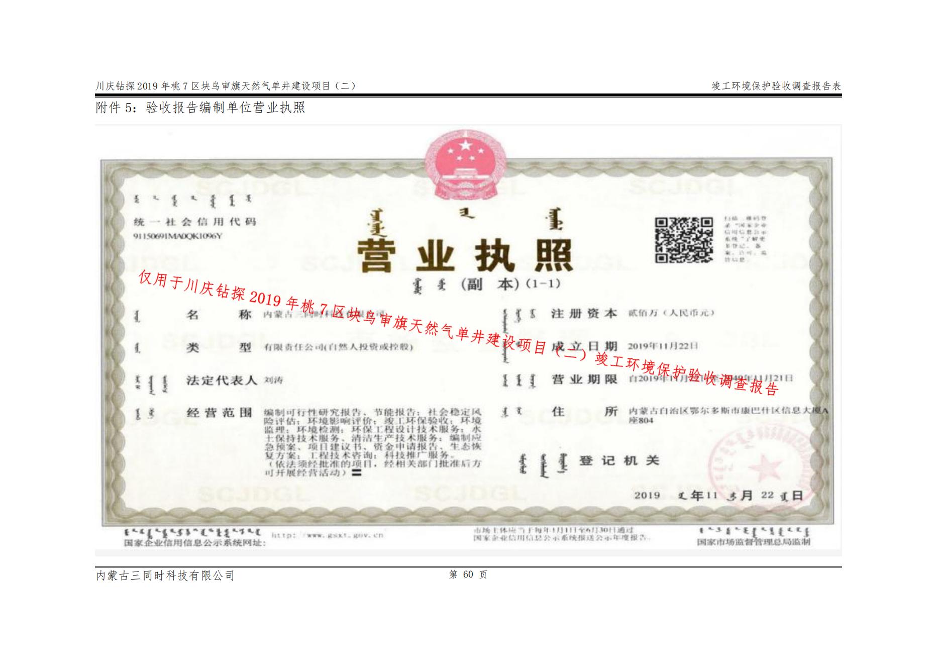 川庆钻探2019年桃7区块乌审旗天然气单井建设项目(二) 竣工环境保护验收调查报告(1)