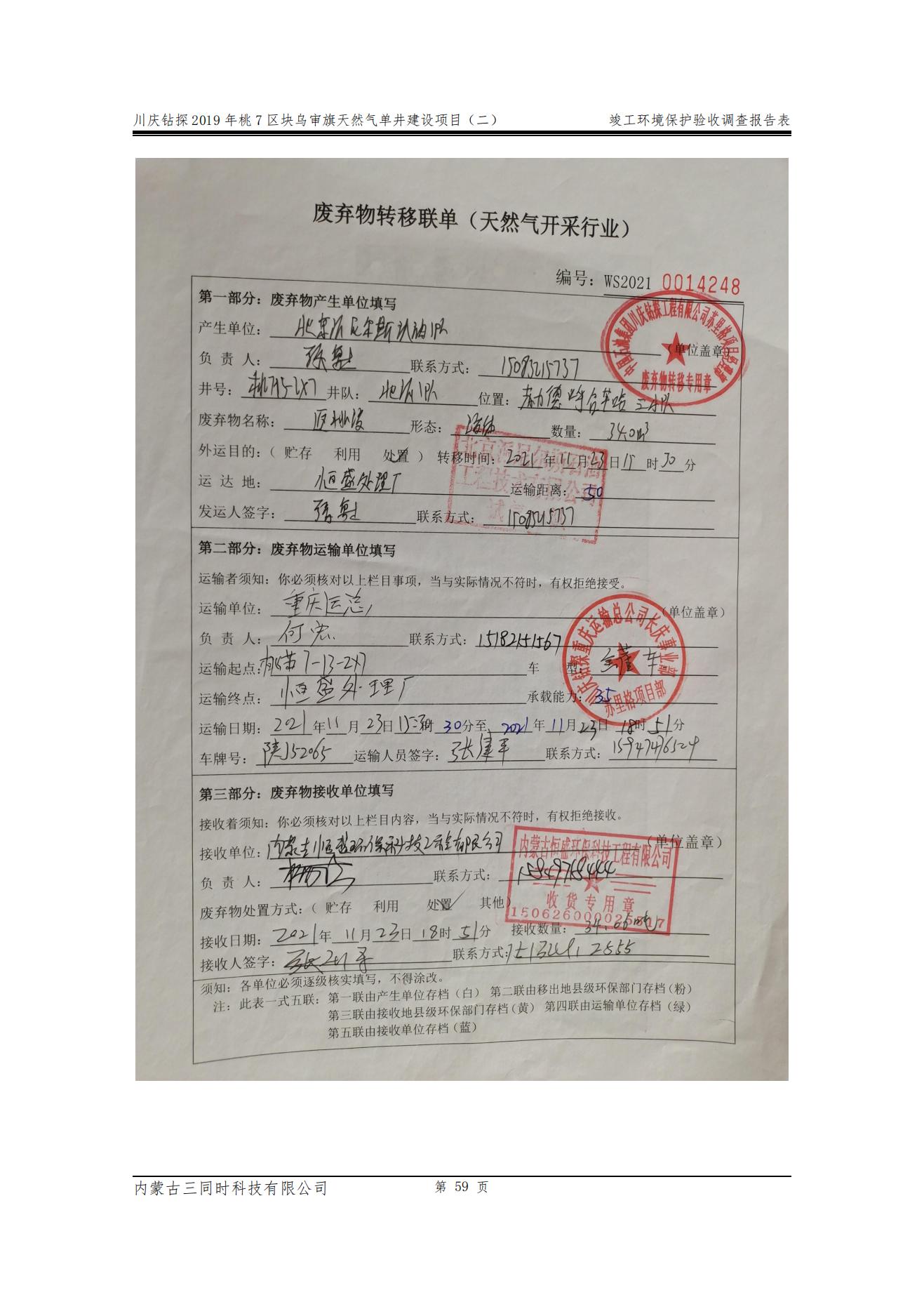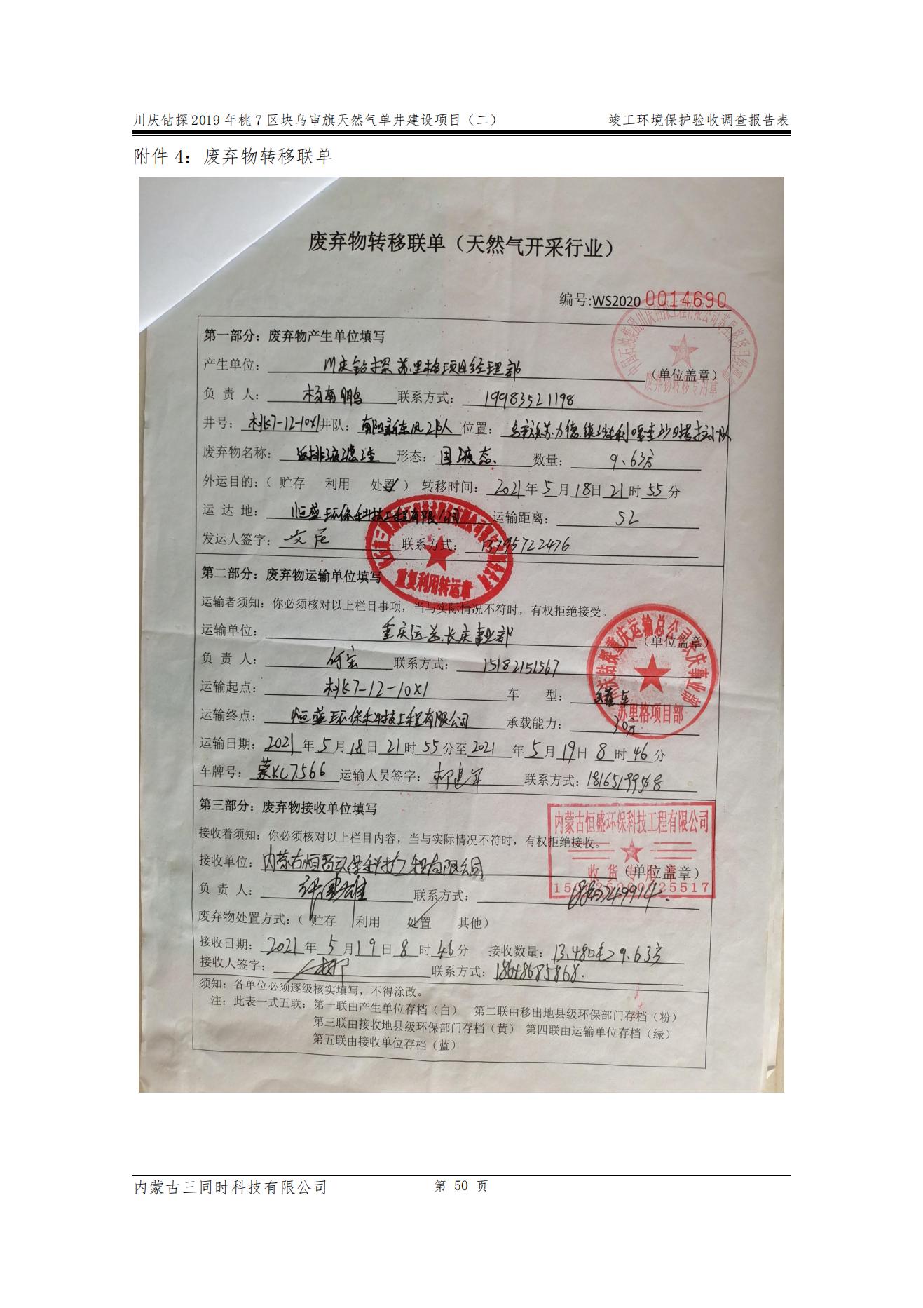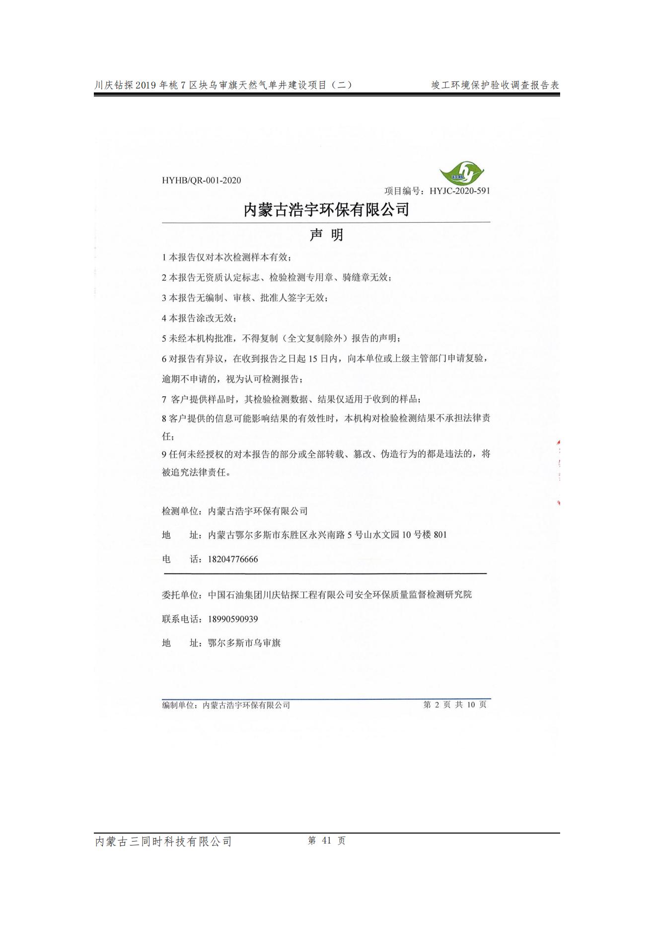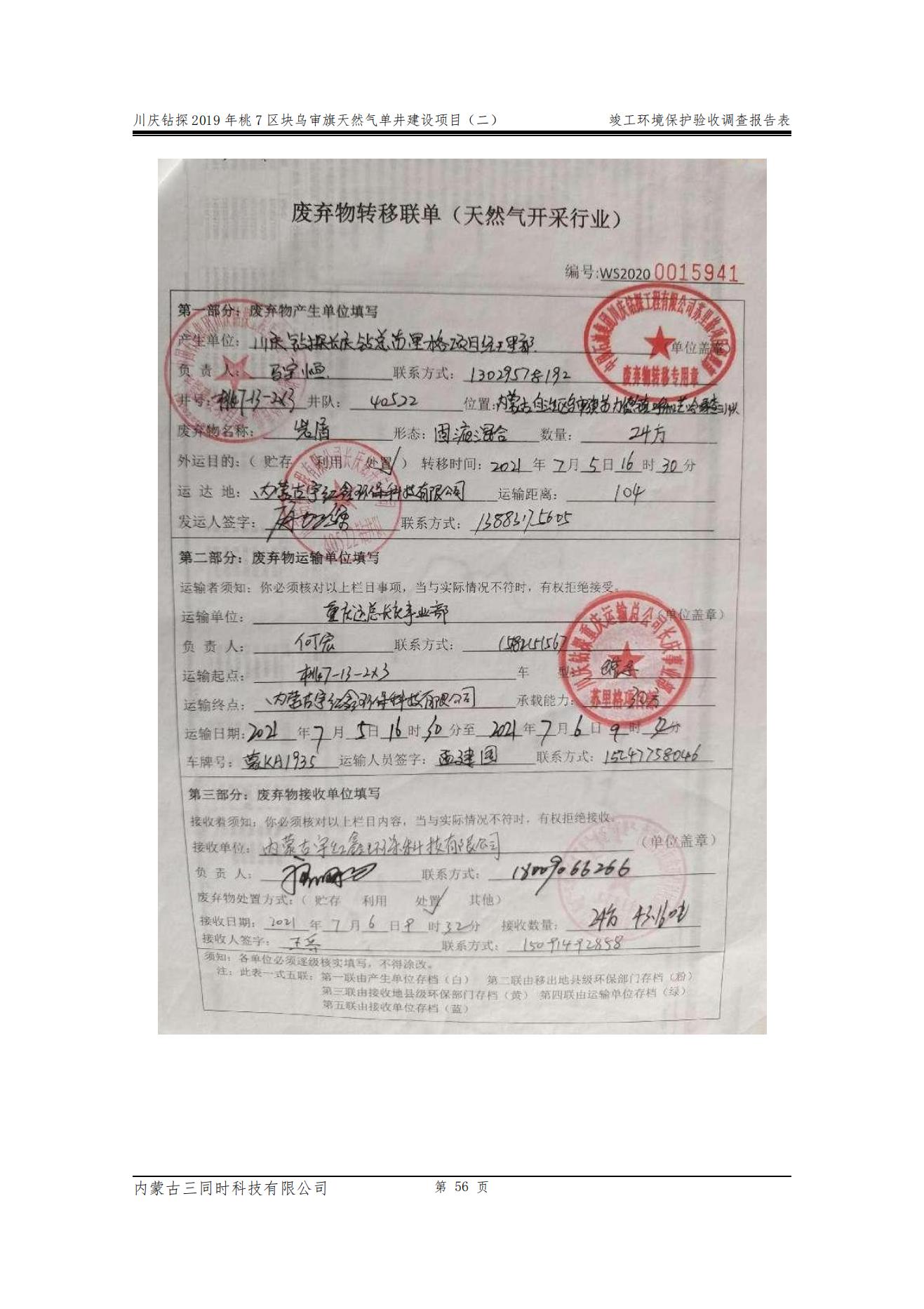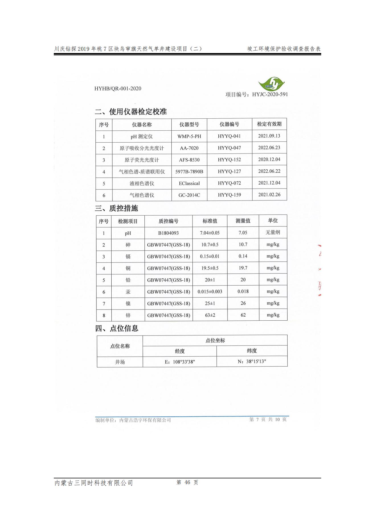 川庆钻探2019年桃7区块乌审旗天然气单井建设项目(二) 竣工环境保护验收调查报告(1)