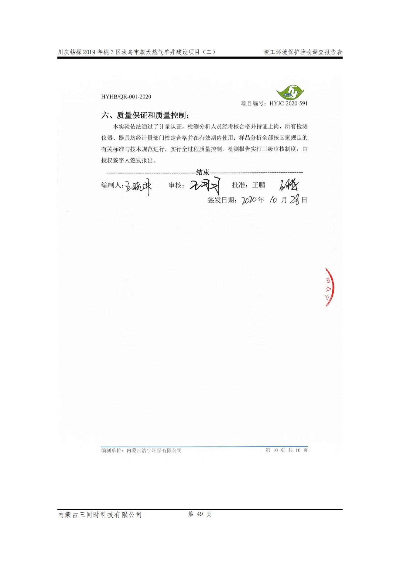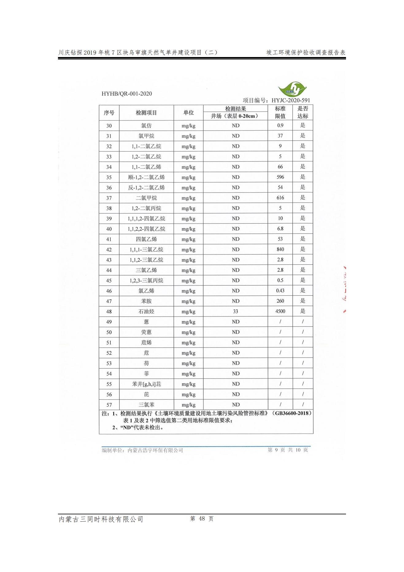 川庆钻探苏里格项目经理部2020年第三批鄂托克旗苏米图单井建设项目 竣工环境保护验收调查报告(1)